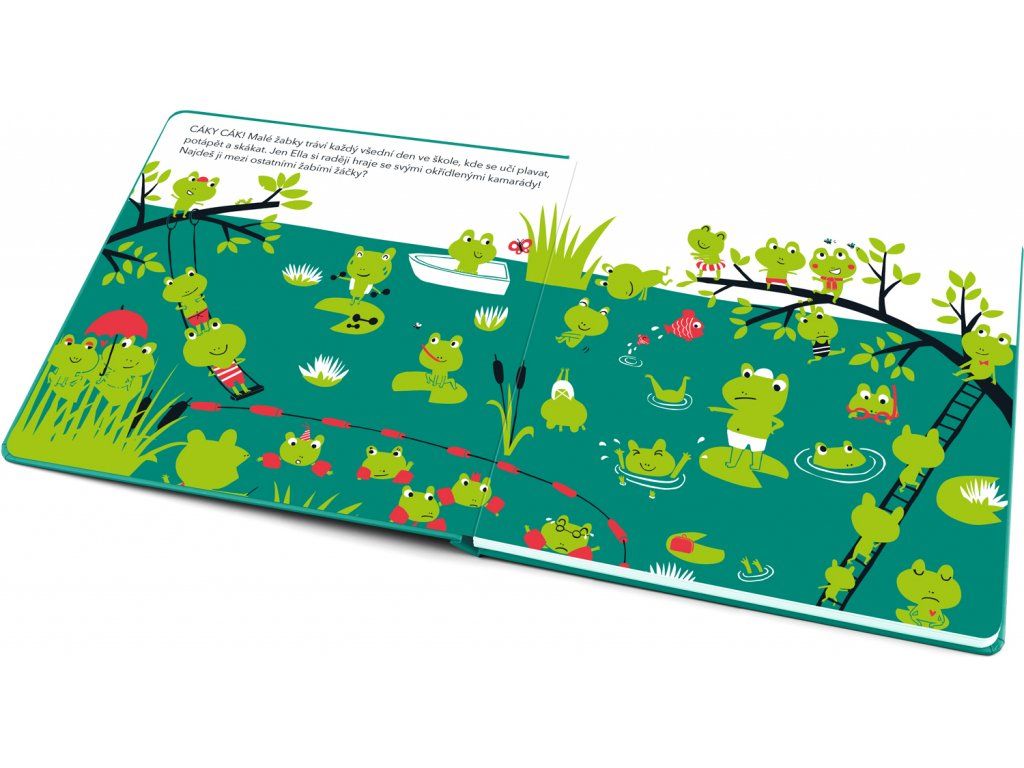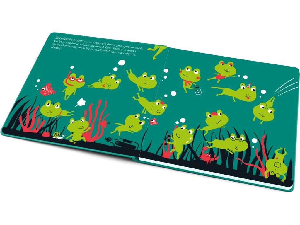 V tomhle leporelu mají děti za úkol najít na každém obrázku žabku Ellu, která je trochu jiná než ostatní. Není to tak jednoduché, jak by se mohlo zdát, neboť má kolem sebe pořád spoustu kamarádek. Stačí však pohladit stránku a objevíte ji – je totiž krásně sametová!