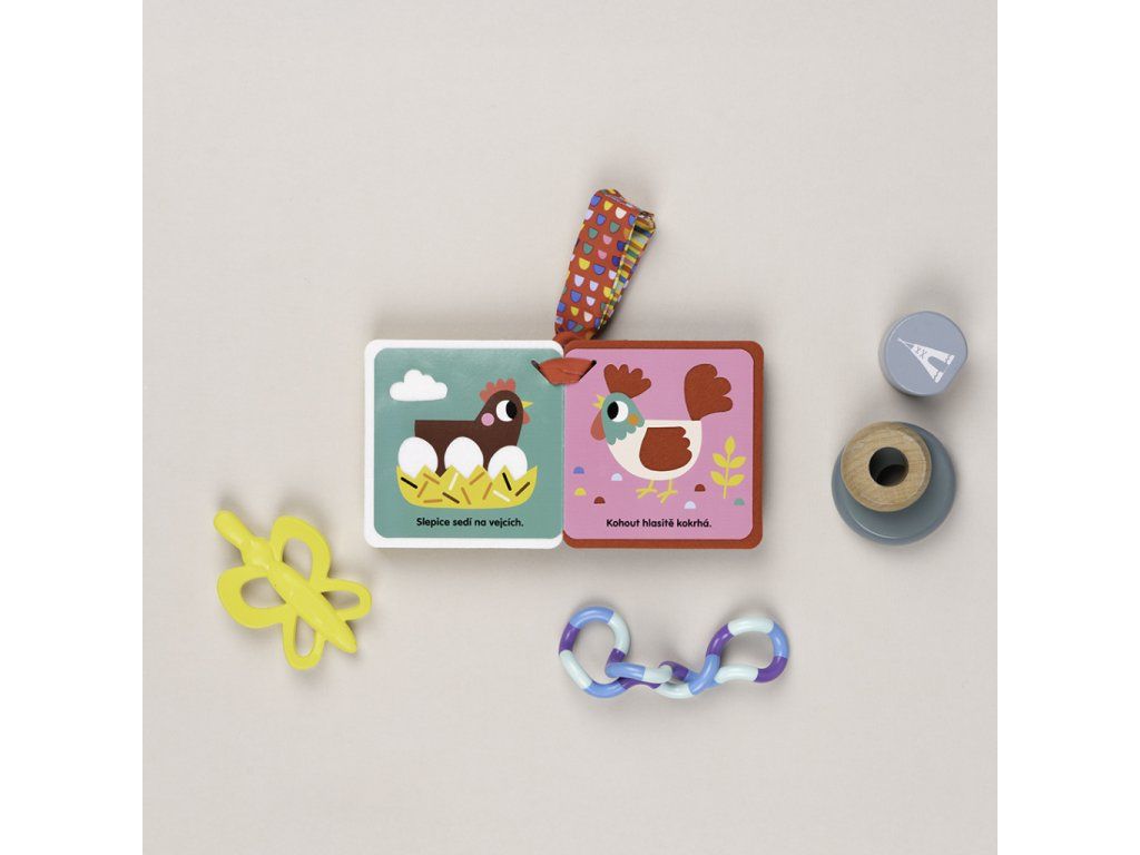 Seznamte se s naším novým konceptem knížek lehkých jako pírko! Praktickým poutkem je lze hravě připevnit třeba ke kočárku, a tak je váš malinký čtenář může mít stále po ruce. Navíc se nemusíte obávat toho, že knížku ztratíte nebo se s ní dítěti bude špatně manipulovat. Ultralehká knížka, která představuje roztomilé kuřátko a jeho kamarády ze dvora, má totiž měkké filcové stránky a formát tak akorát i do nejmenší ručičky. Je plná zvířátek a barev a obsahuje také haptické prvky pro komplexní smyslový rozvoj.