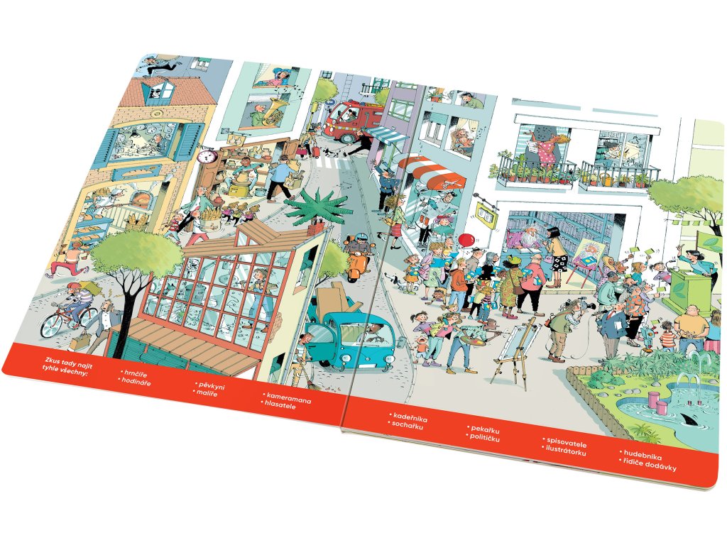 S touhle knížkou o tom, jakým POVOLÁNÍM a činnostem se lidé věnují, si užijete dlouhé hodiny zábavy! Poznáte, jaká řemesla lidé provozují nebo kam chodí do zaměstnání. Najdete tu spoustu příběhů s dobrým koncem, ale i řadu neslavných příhod. Mějte oči na stopkách! Každá stránka je plná detailních barevných obrázků, v nichž lze donekonečna objevovat vždy nové a nové věci, vtípky, postavy i jejich dobrodružství. Řada z nich je úplně obyčejných, ale mnohé jsou tak neobvyklé, že je lze spatřit nebo prožít právě jen na stránkách tohohle krásného velkoformátového leporela.