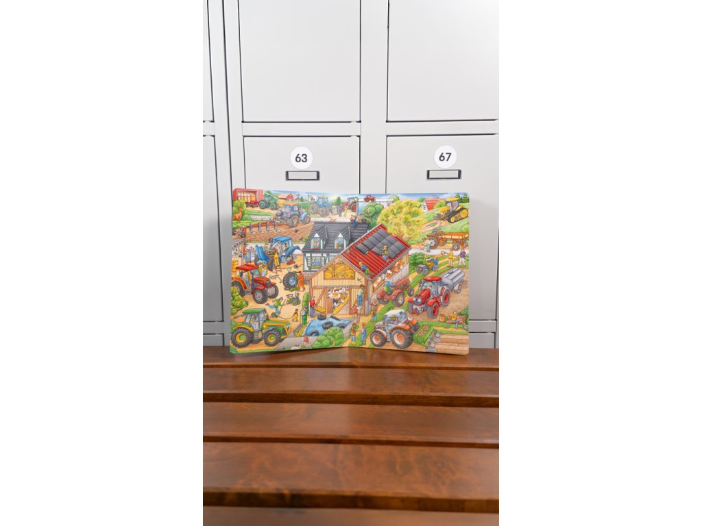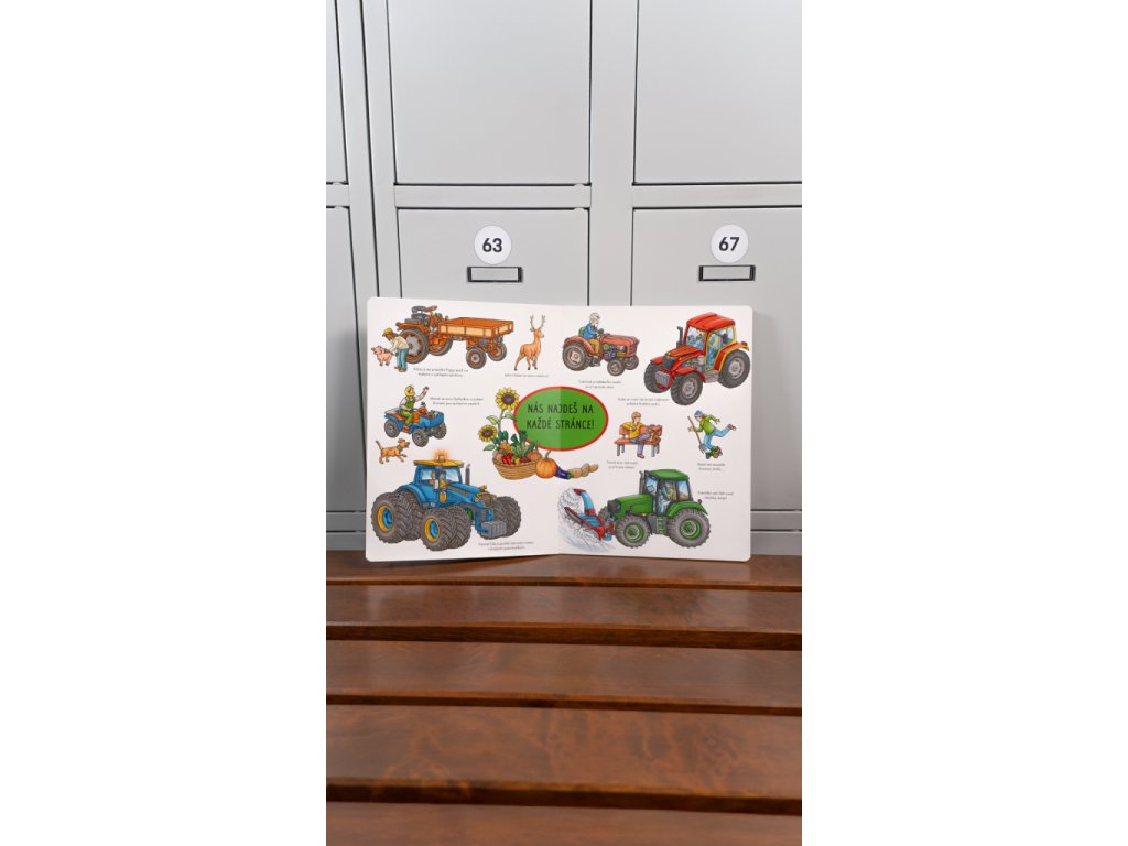 Traktory a další zemědělské stroje mají co dělat v každém ročním období. Díky detailním ilustracím se s nimi můžete vydat za prací, ale i zábavou také vy! Zjistěte, jak pomáhají na venkově, na statku, na polích, zkrátka všude tam, kde je lidé využívají. Sledujte příběhy, které se rozehrávají na stránkách tohoto úžasného velkoformátového leporela, a zažívejte dobrodružství s hrdiny a jejich stroji, které můžete na každé dvojstraně hledat znovu a znovu. Stačí se jen ponořit do barevného světa obrázků a pozorně se dívat…