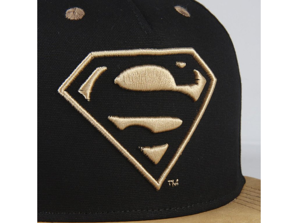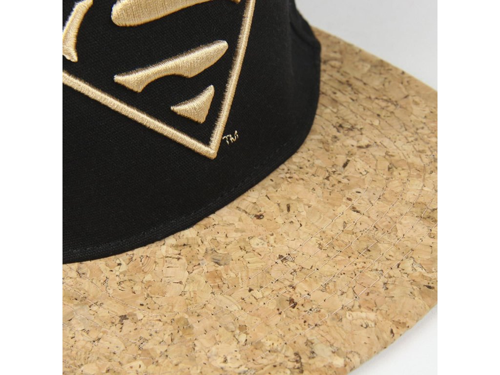 Černá Rap kšiltovka s kšiltem se zajímavou texturou korku a logem nepřemožitelného Supermana ve stejném odstínu.