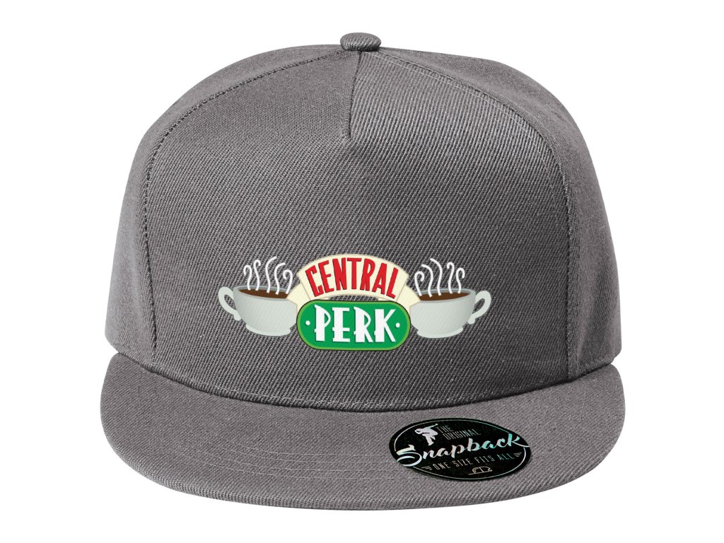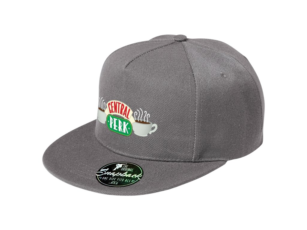 Šedá Snapback / RAP kšiltovka s motivem loga kavárny Central Perk z kultovního amerického Přátelé.