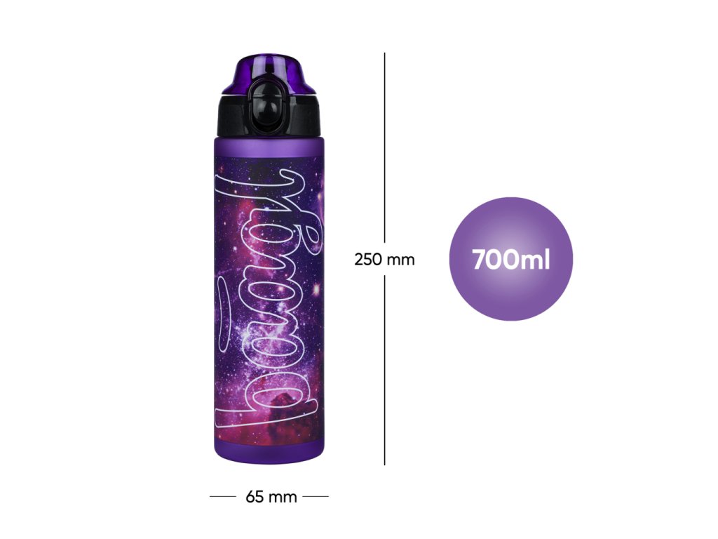 Uzamykatelné víčko nepropustí ani kapku nápoje a zaručuje jednoduché a intuitivní používání. K láhvi je připevněné také poutko pro pohodlné nošení v ruce.