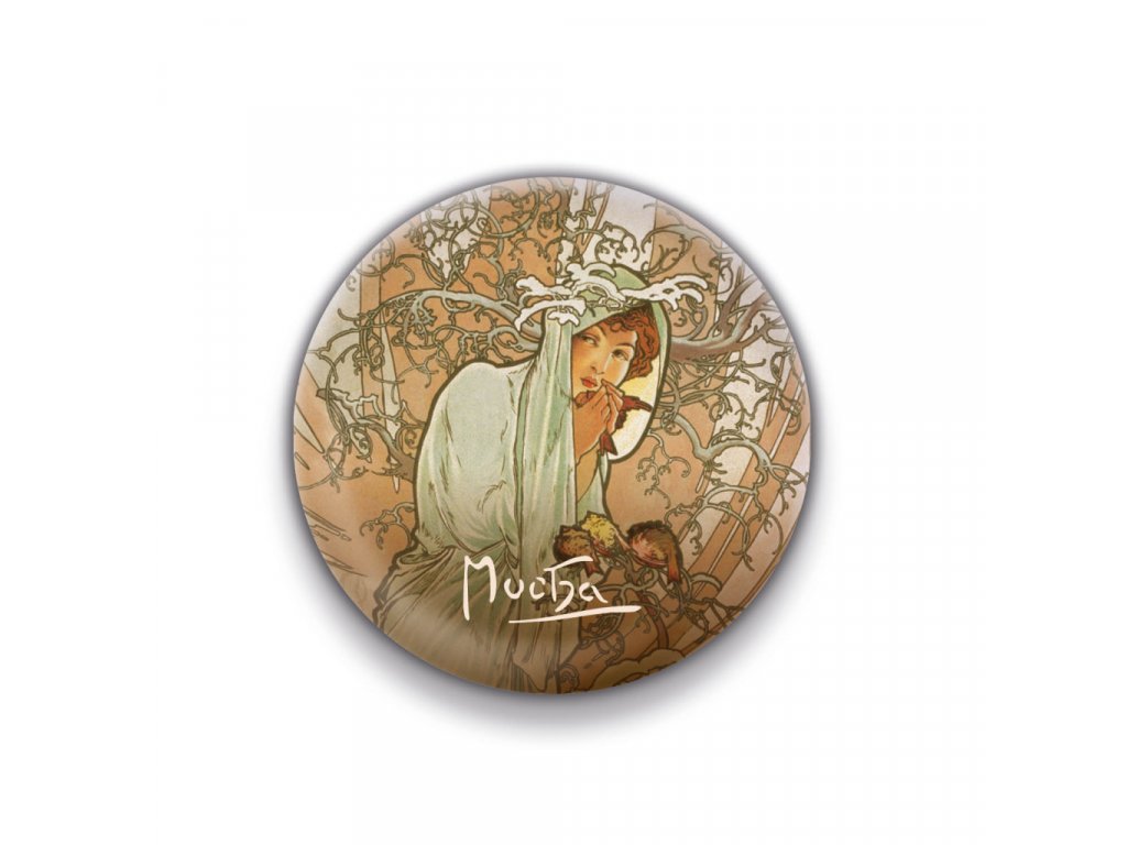 Magnet Alfons Mucha – Zima, kulatý, 5 cm