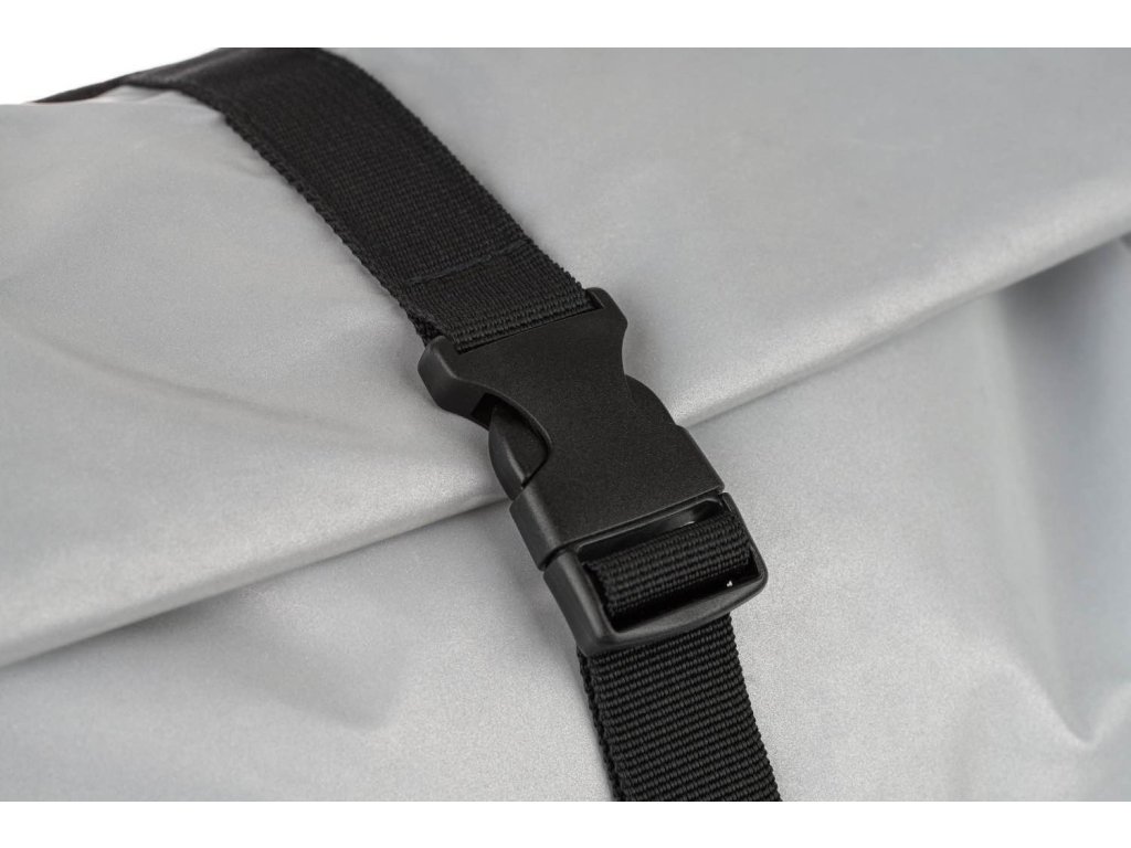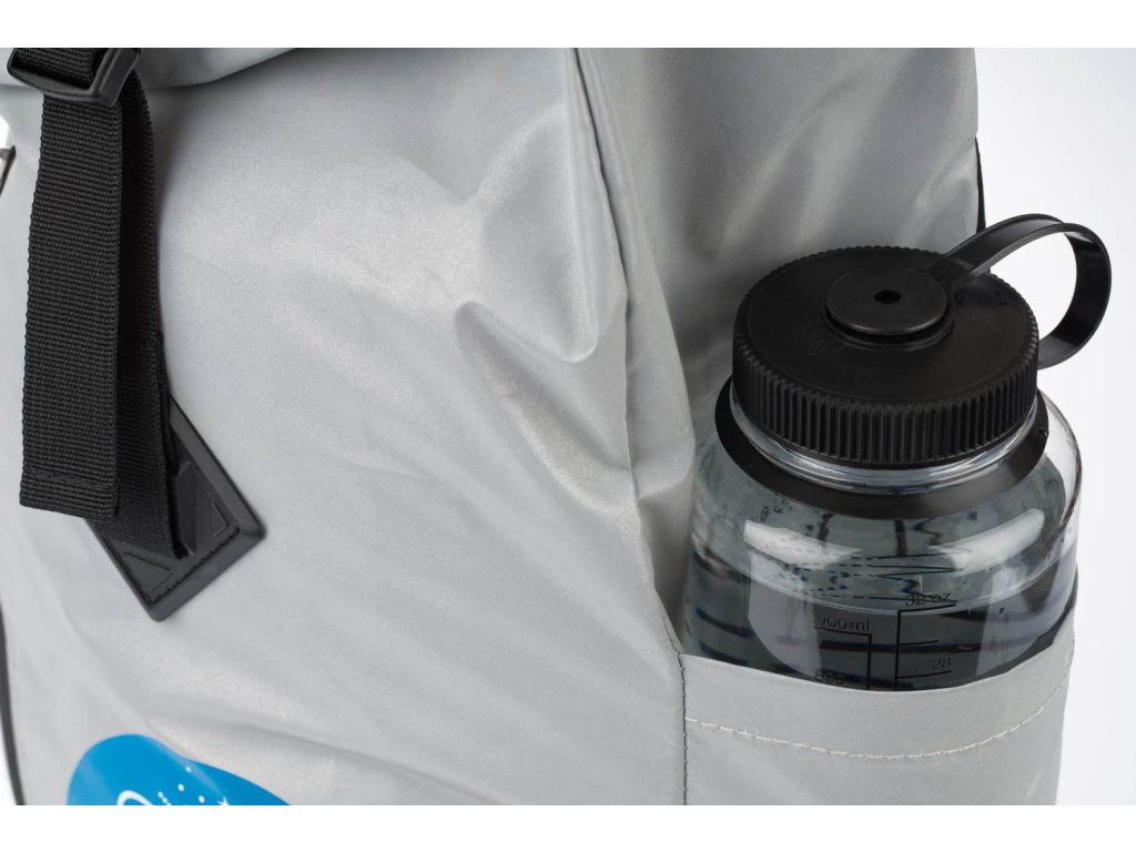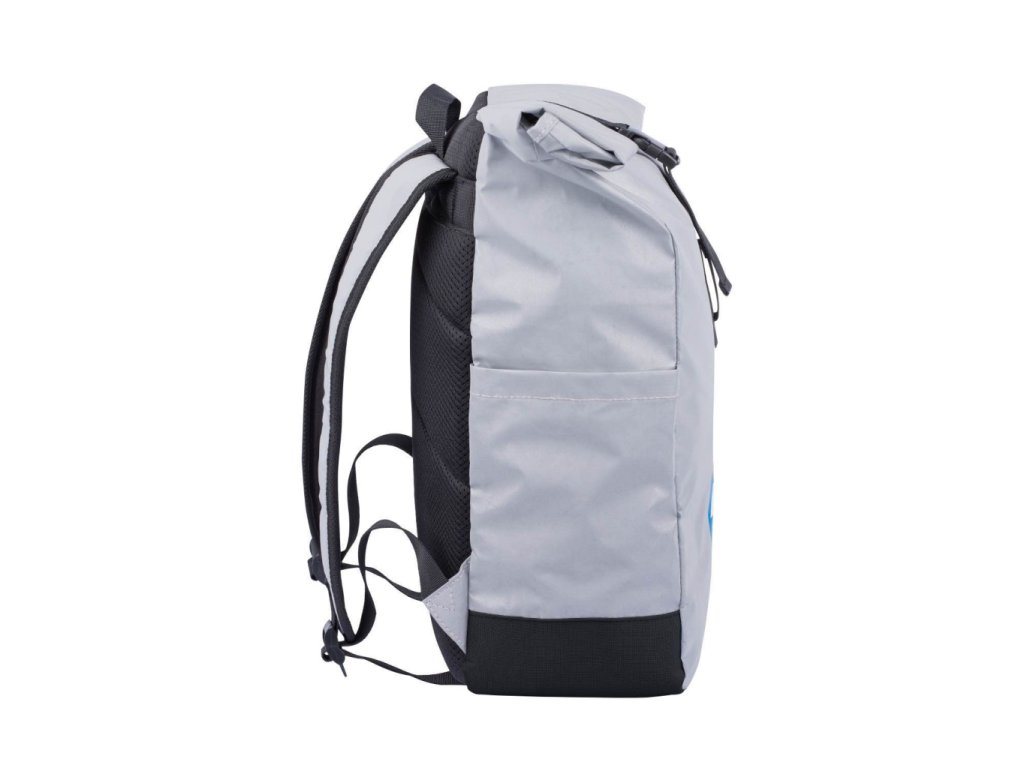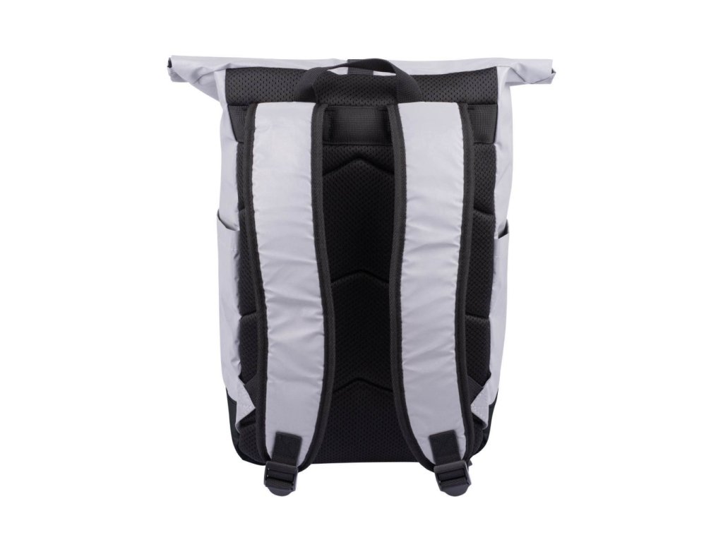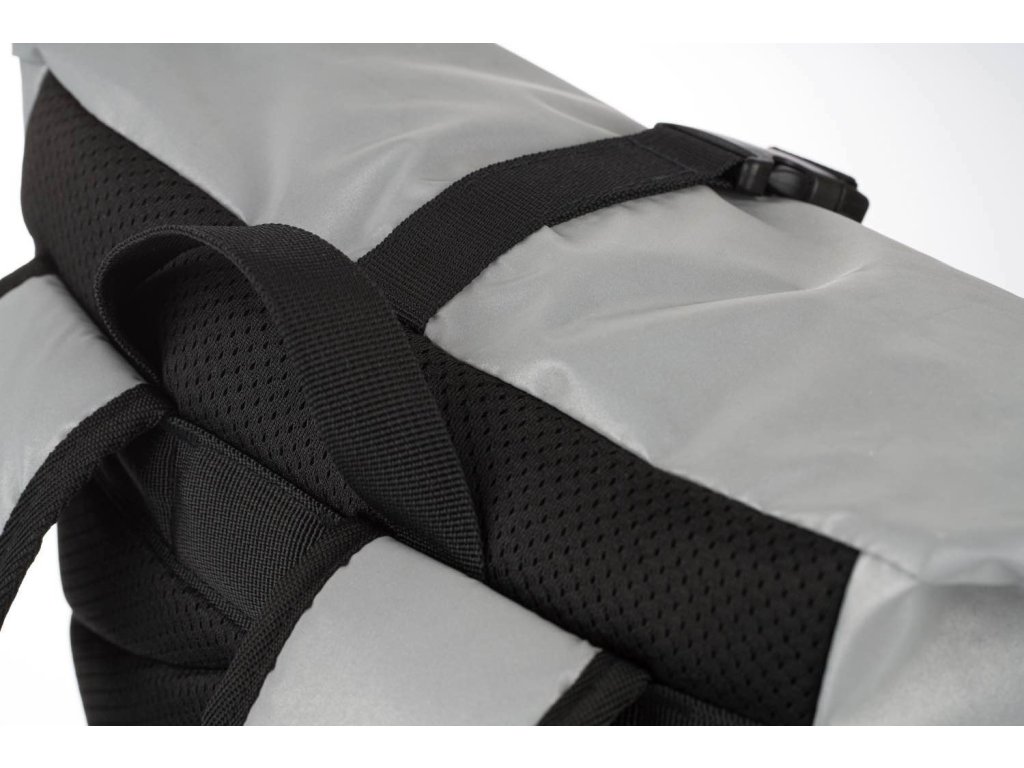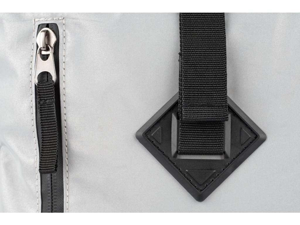 • Stříbrný lifestylový roll-top batoh ušitý z reflexního materiálu, doplněný o ikonické logo NASA.