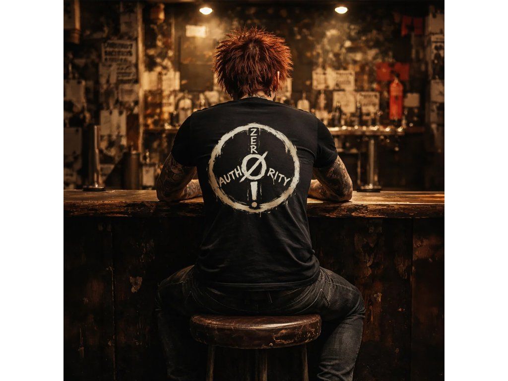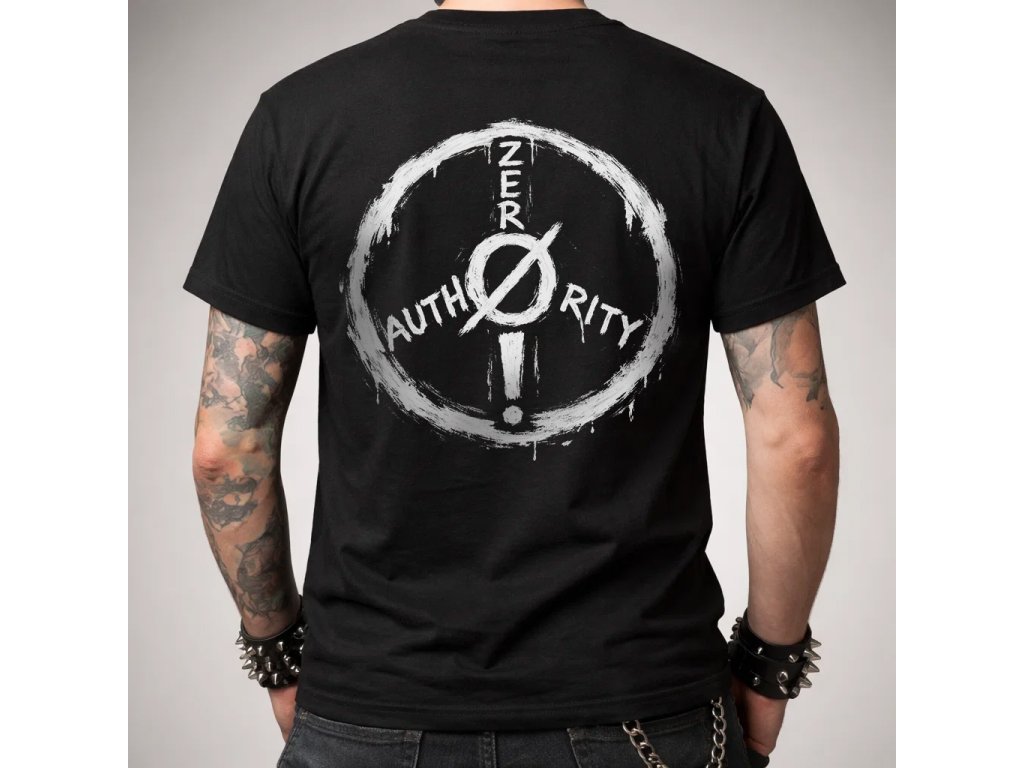 Černé bavlněné tričko prémiové kvality značky Midnight Gear v kolekci ZERO AUTHORITY pro ty, kteří již chtějí přestat hrát hru, kterou někdo jiný napsal.