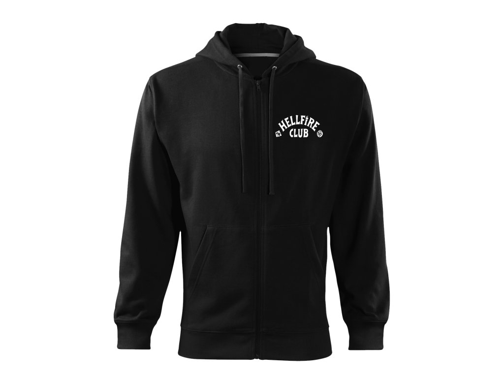 Černá mikina na zip a kapucí s motivem loga Hellfire Clubu ze čtvrté série jednoho z nejlepších seriálů současnosti STRANGER THINGS.