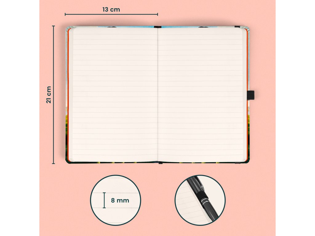 Notes v pevných deskách z kolekce Kateřiny Winterové s uzavíráním na gumičku, kapsou na drobnosti a poutkem na tužku. Uvnitř najdete 172 linkovaných stran na krémovém papíře pro zapsání všech vašich nápadů.