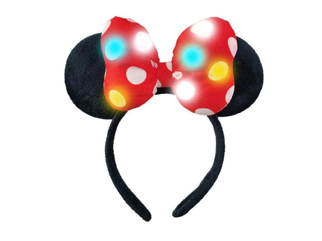 Zábavná čelenka do vlasů ve které se budete cítit jako módní ikona Minnie Mouse. Čelenka s ušima a velkou svítící mašlí.