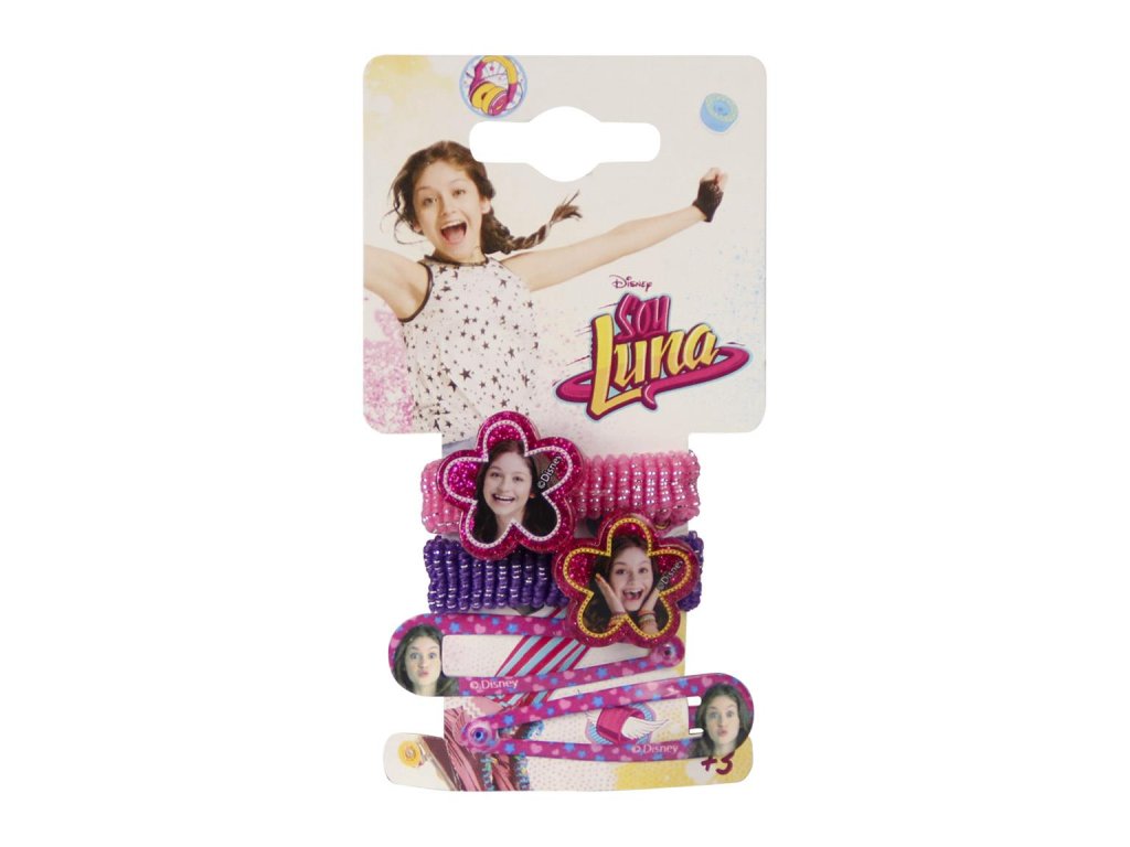 Sada dvou stylových gumiček a dvou sponek do vlasů s motivy rozverné bruslařky Soy Luny z oblíbeného argentinského seriálu pro teenagery.