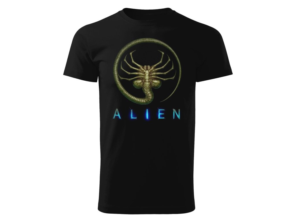 Černé bavlněné tričko s ikonickým motivem stylizovaného Facehuggera z kultovní sci-fi filmu Vetřelec / Alien.