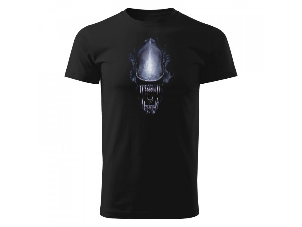 Černé bavlněné tričko s motivem děsivého Xenomorpha rýsujícího se v temnotě z kultovního filmu Vetřelec / Alien.