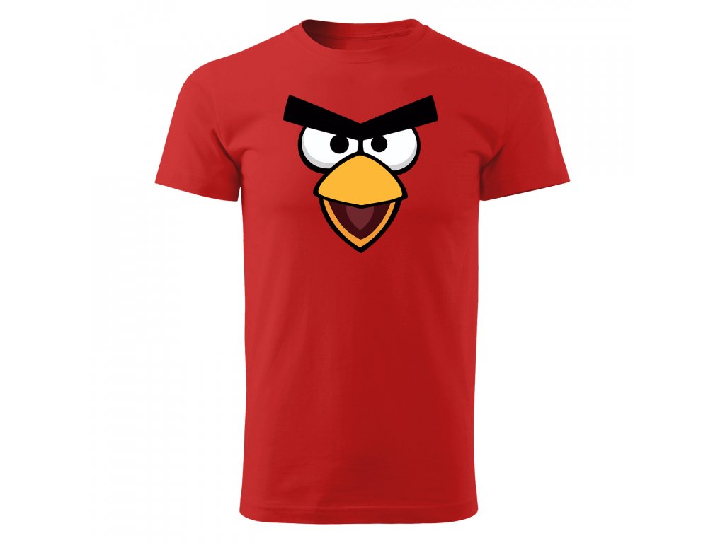 Červené bavlněné tričko s motivem oblíbené mobilní hry Angry Birds.