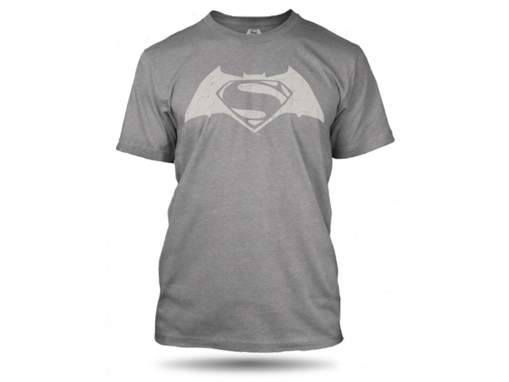 Šedé tričko s motivem Batmana vs Supermana. Komu fandíte vy?