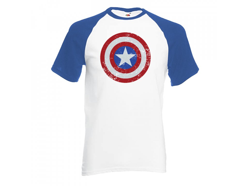 Pánské tričko Captain America - Shield, modrý rukáv