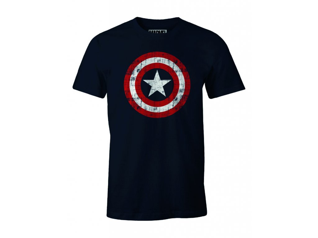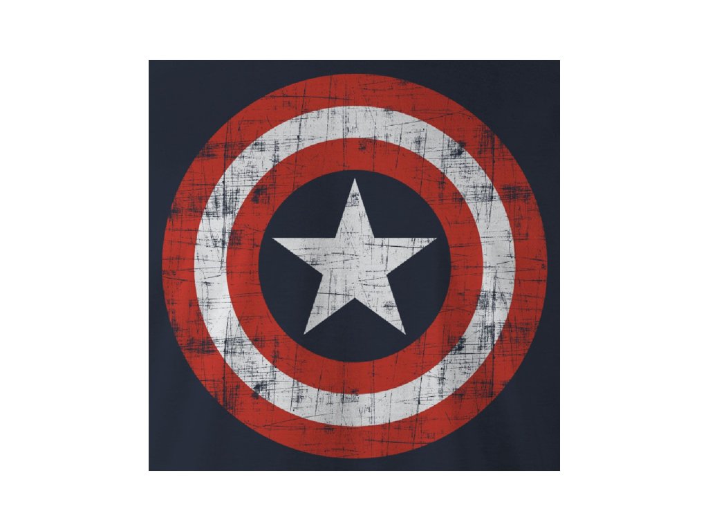 Temně modré, až černé, pánské bavlněné triko s motivem štítu Kapitána Ameriky.
