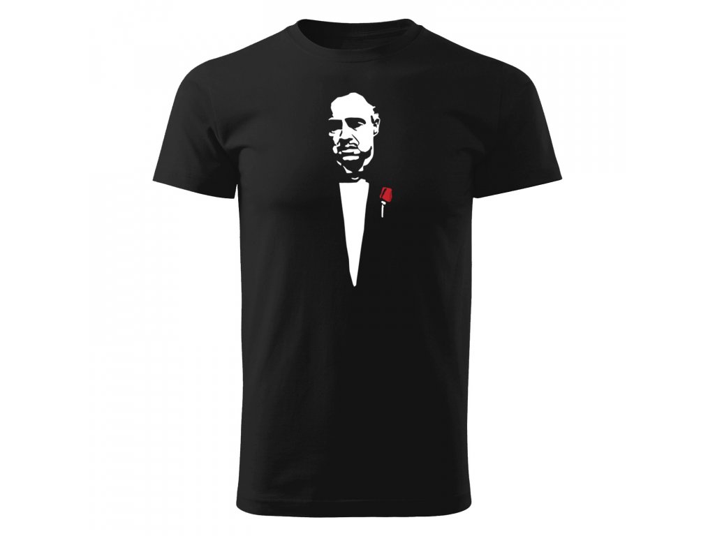 Černé bavlněné tričko s klasickým stylizovaným motivem nejslavnějšího filmového mafiánského kmotra z filmové série Godfather.