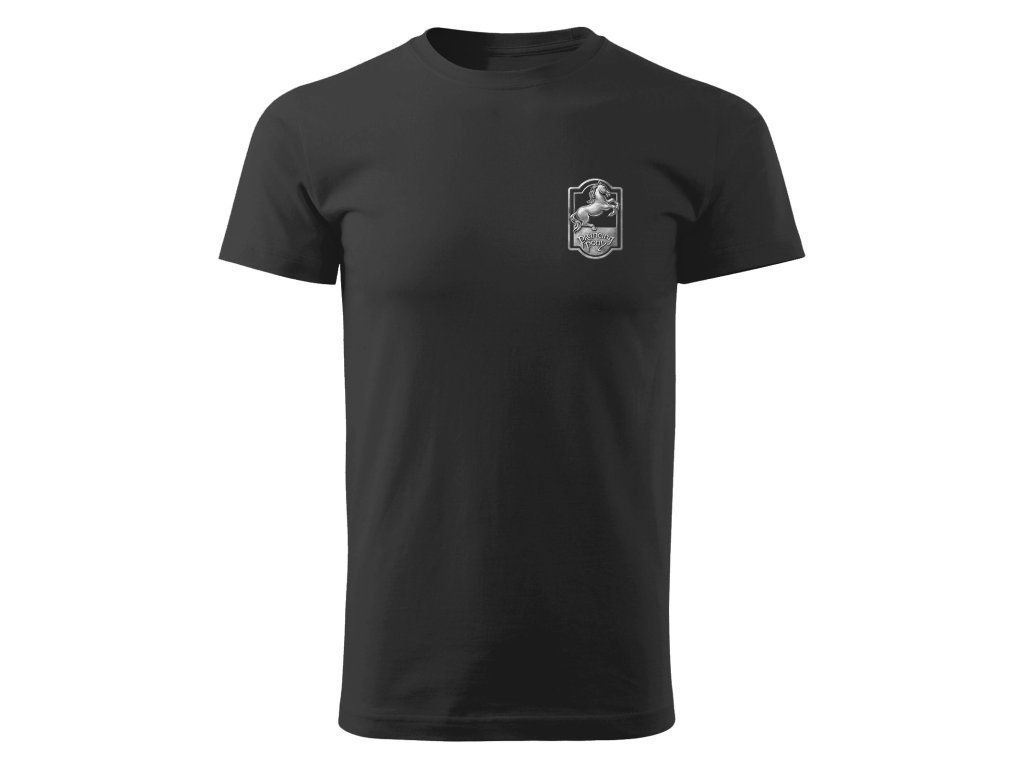 Černé bavlněné tričko s emblémem hostince u Skákavého poníka.