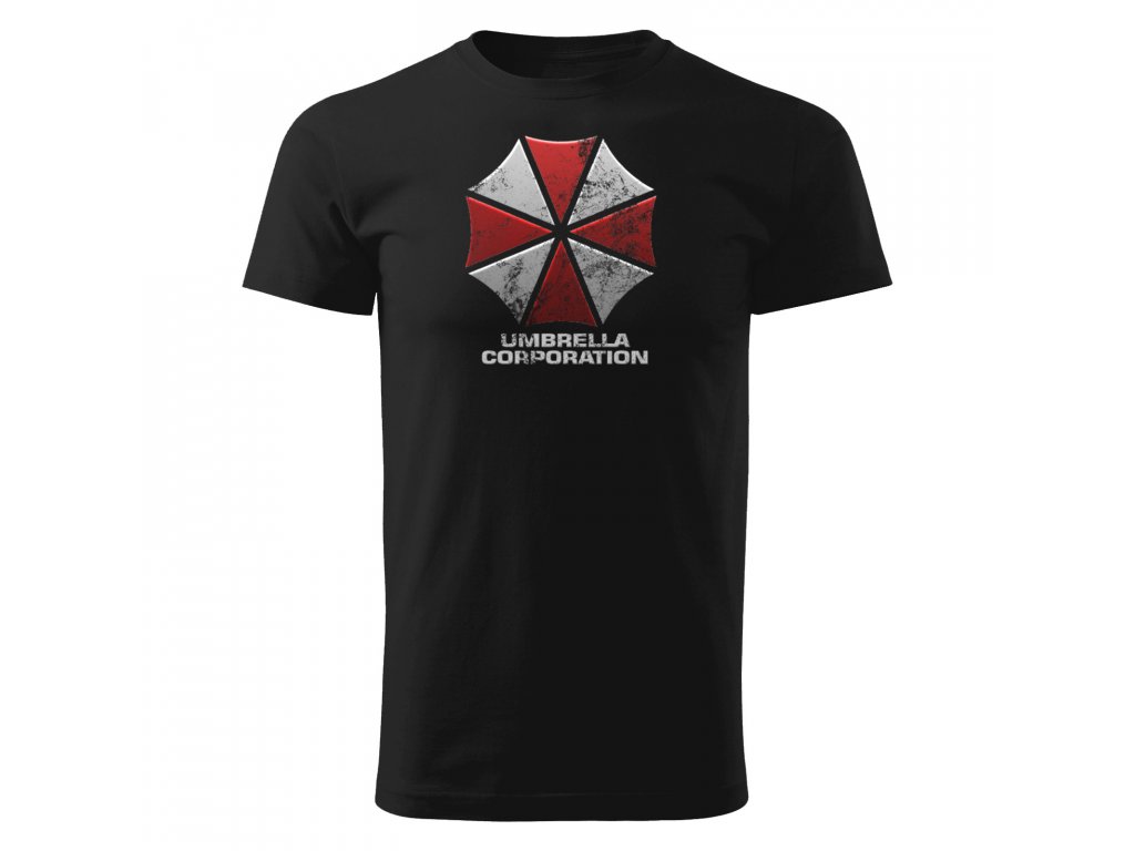 Černé bavlněné tričko s motivem loga společnosti Umbrella odpovědné za vypuštění zombie viru z kultovní počítačové hry a filmové série Resident Evil.