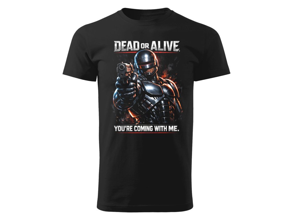 Pánské bavlněné tričko s hláškou "Dead or Alive, you´re coming with me" z klasického akčního sci-fi filmu Paula Verhoevena Robocop.