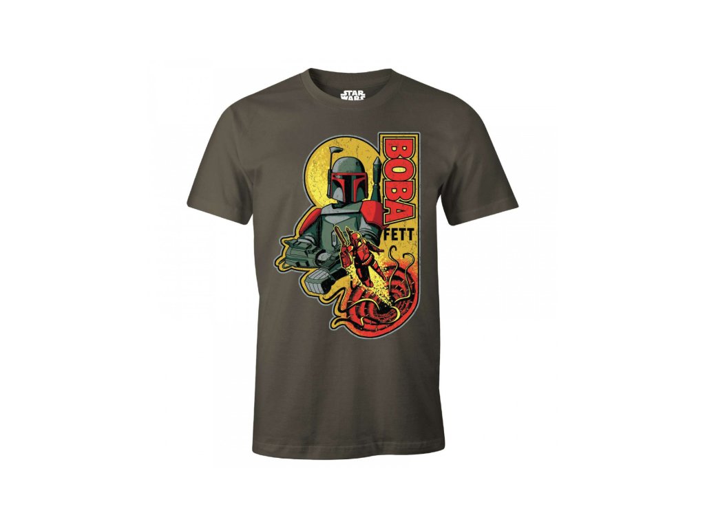 Černé bavlněné tričko s motivem postavy lovce odměn jménem Boba Fett.