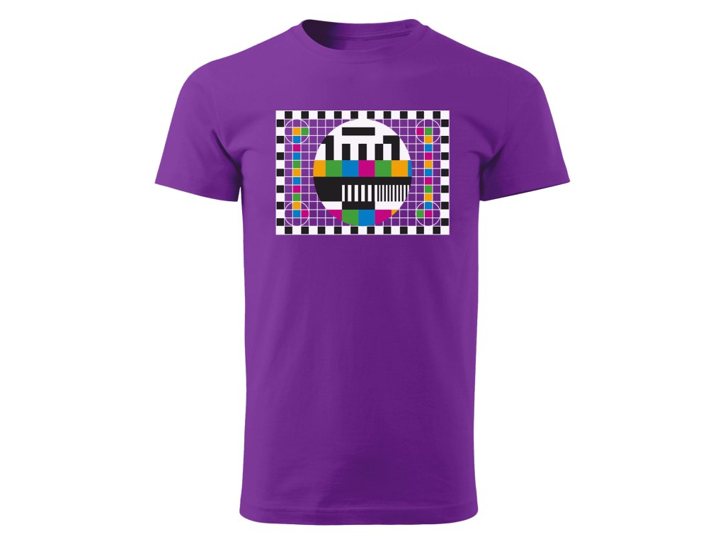 Fialové bavlněné tričko s motivem televizního monoskopu, které rád nosil Sheldon v seriálu The Big Bang Theory.