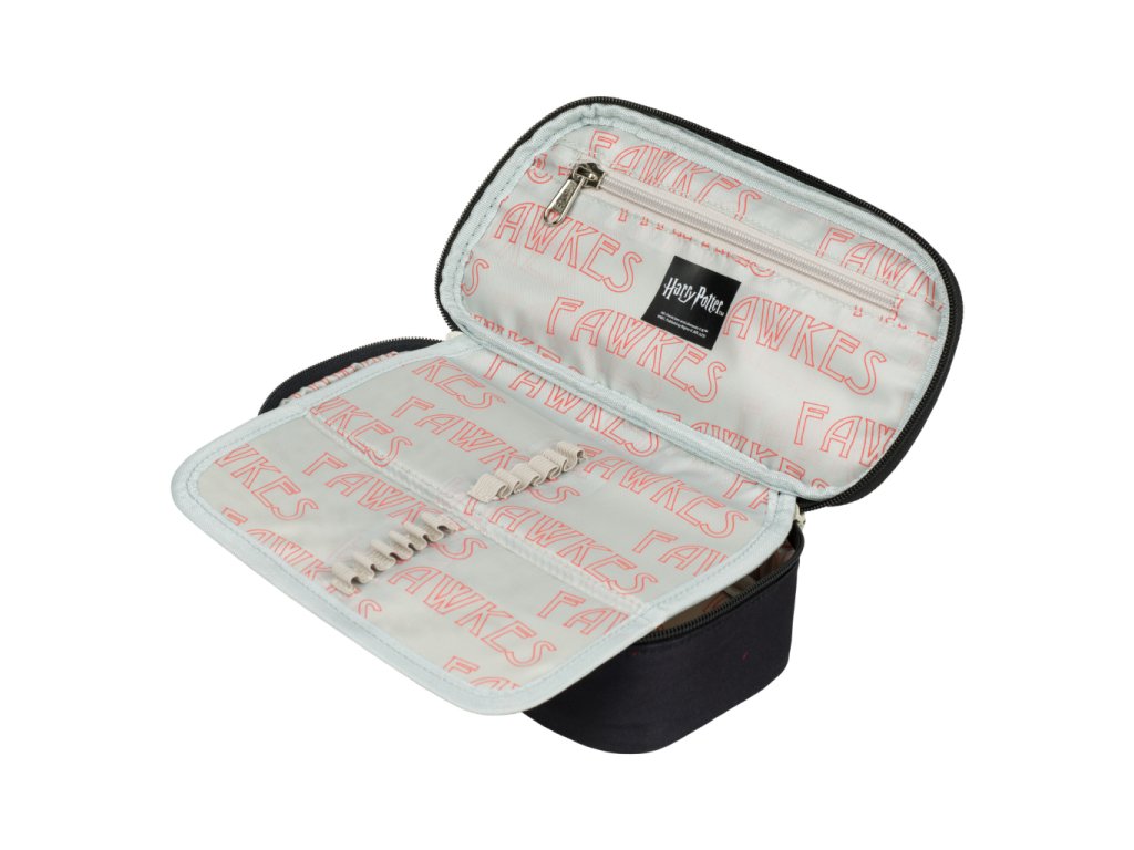 • Kompaktní penál na zip s prostornou hlavní komorou a dvojitou výklopnou chlopní nabízí dostatek prostoru pro psací potřeby i drobnosti.