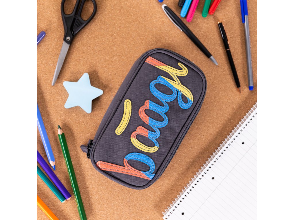 • Kompaktní penál na zip s prostornou hlavní komorou a dvojitou výklopnou chlopní nabízí dostatek prostoru pro psací potřeby i drobnosti.