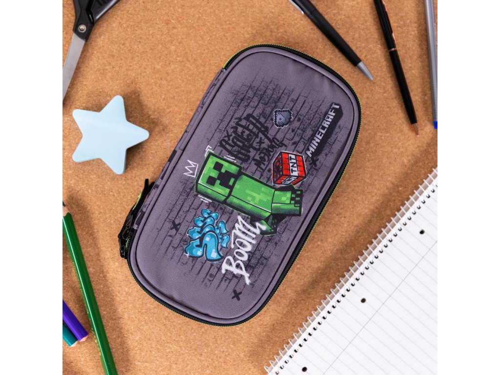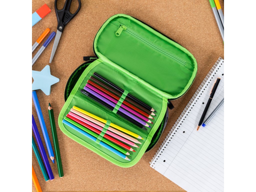 • Kompaktní penál na zip s prostornou hlavní komorou a dvojitou výklopnou chlopní nabízí dostatek prostoru pro psací potřeby i drobnosti.