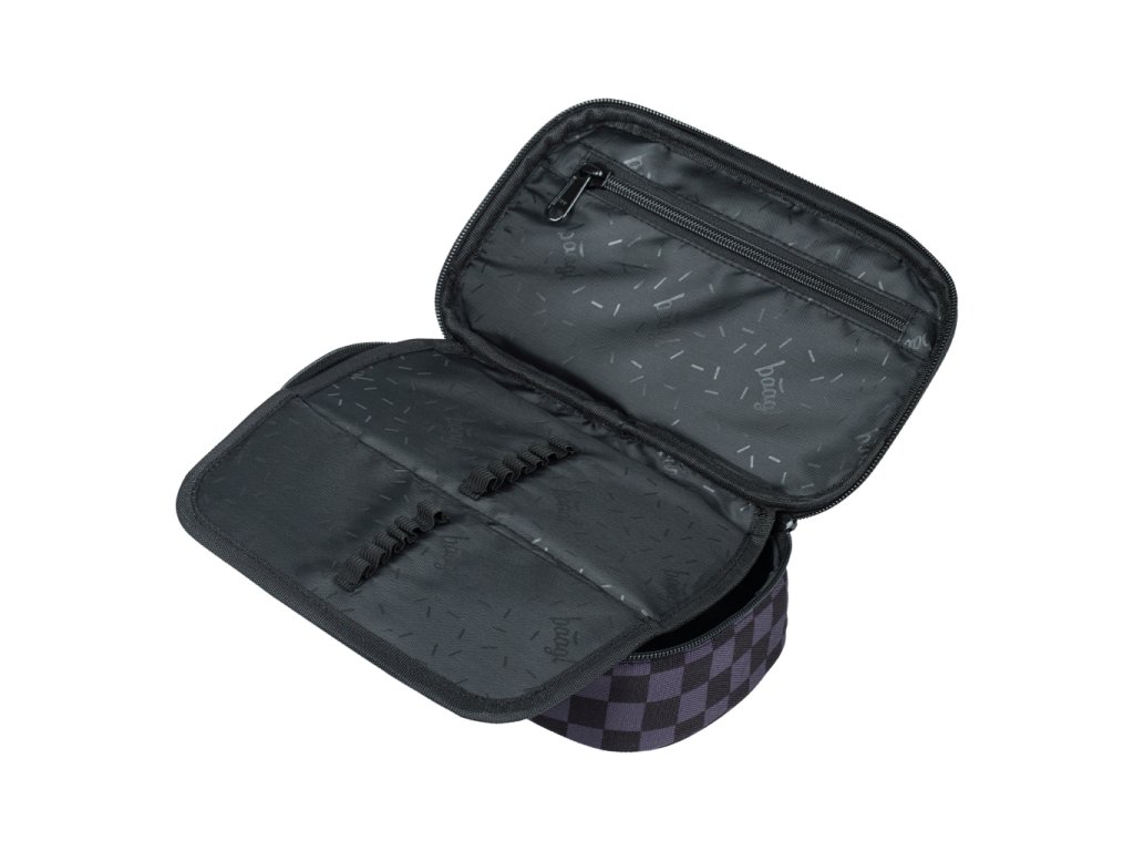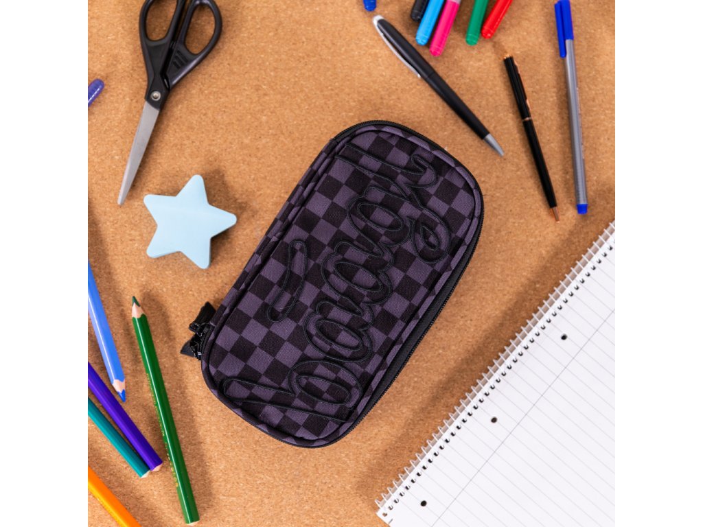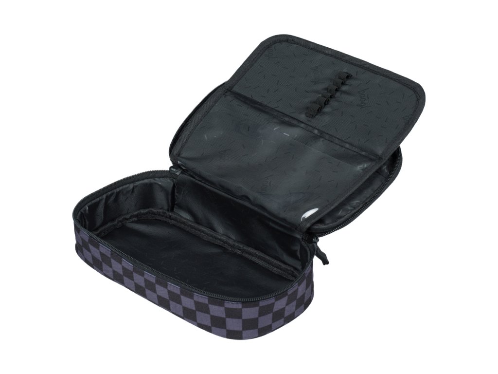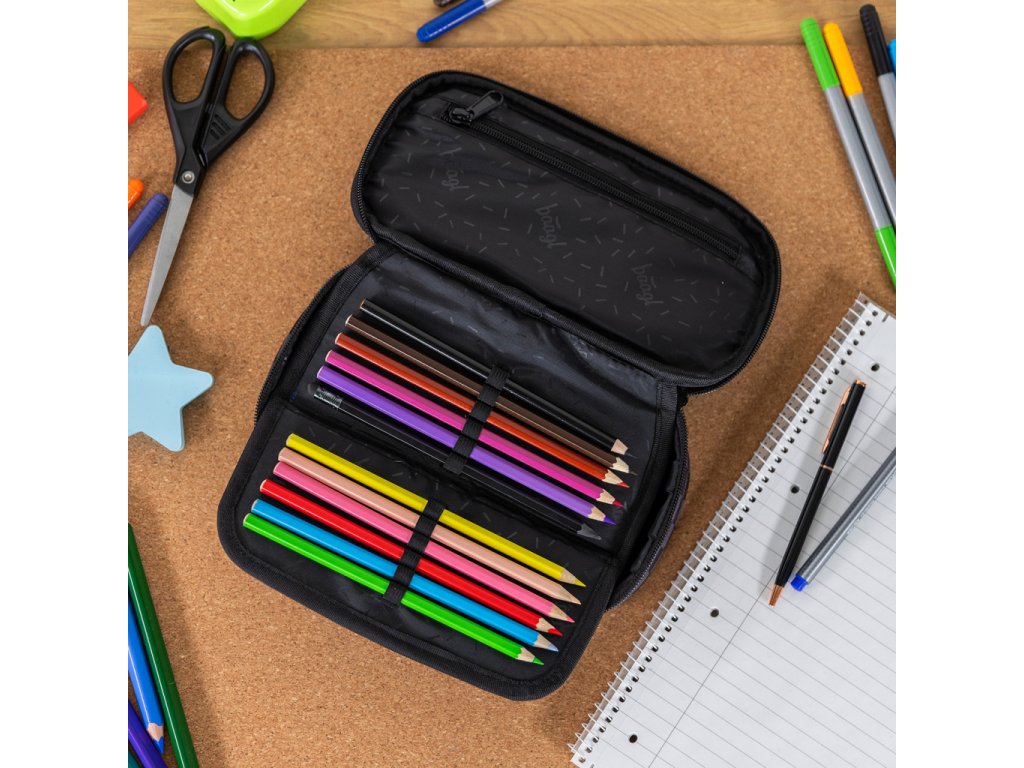 • Kompaktní penál na zip s prostornou hlavní komorou a dvojitou výklopnou chlopní nabízí dostatek prostoru pro psací potřeby i drobnosti.