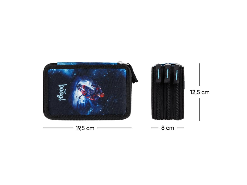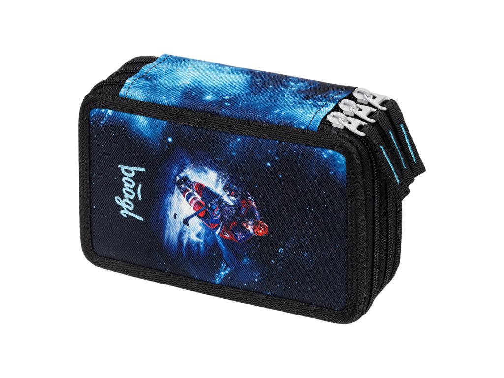• Extra prostorný třípatrový penál na všechny psací potřeby.