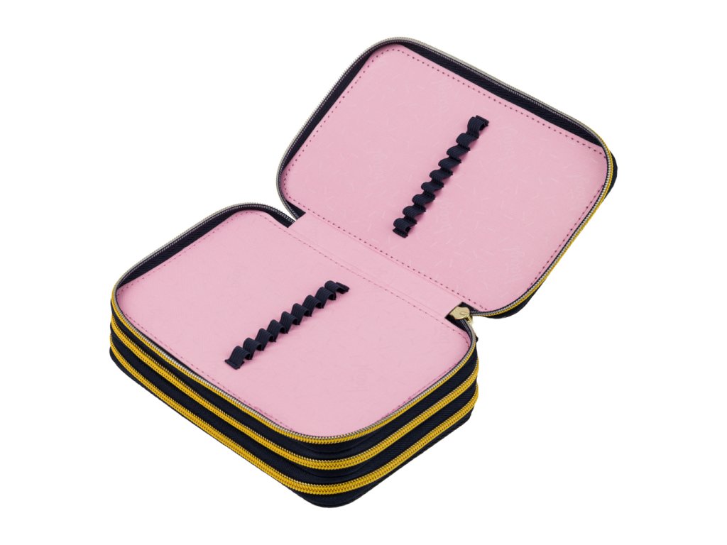 • Extra prostorný třípatrový penál na všechny psací potřeby.