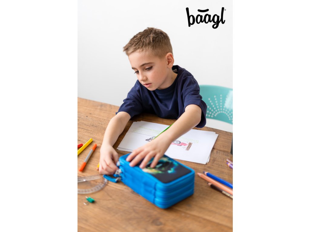 • Extra prostorné třípatrové penály na všechny psací potřeby.