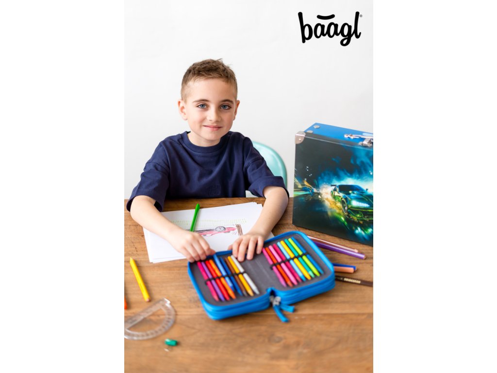BAAGL Školní penál třípatrový Závodní auto