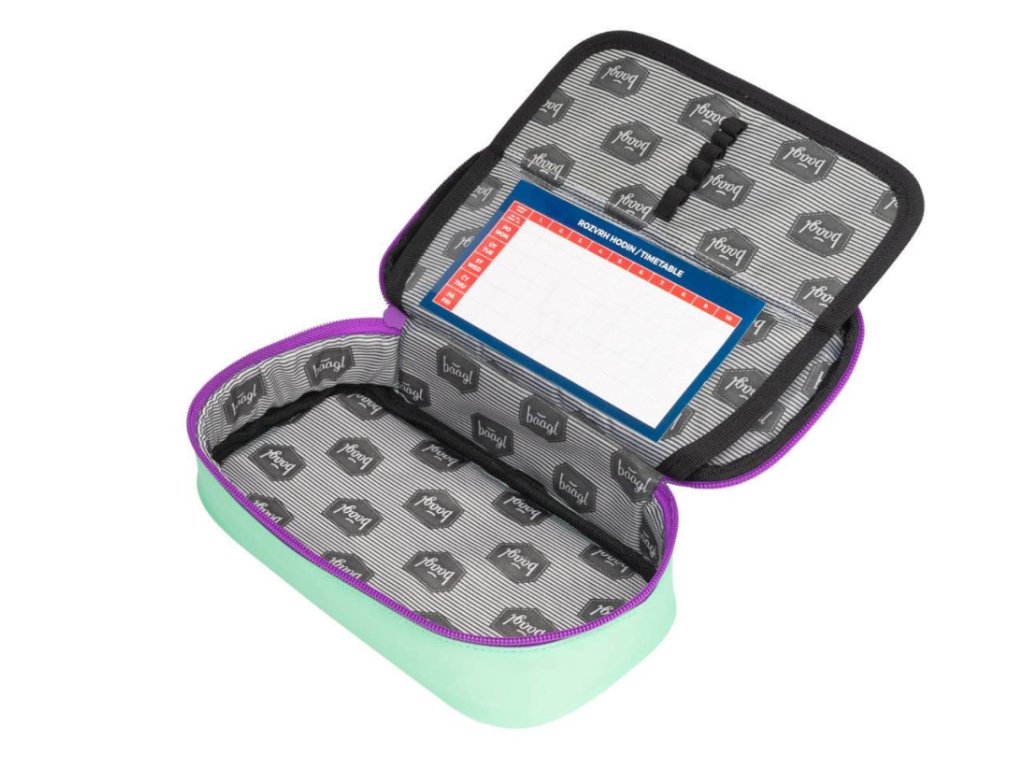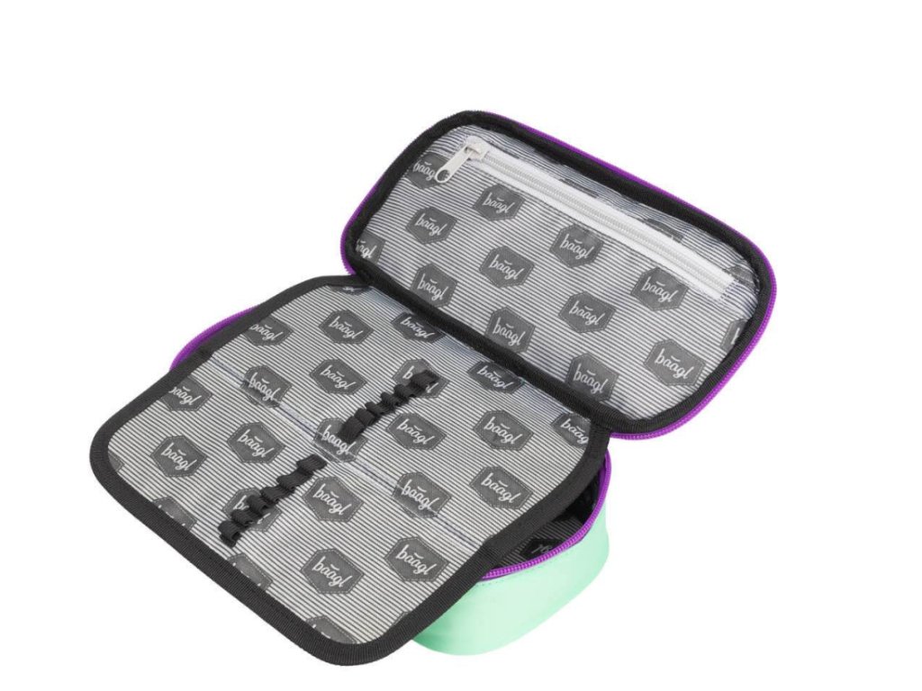 • Pevný penál na zip s dvojitou výklopnou chlopní v mintové barvě.