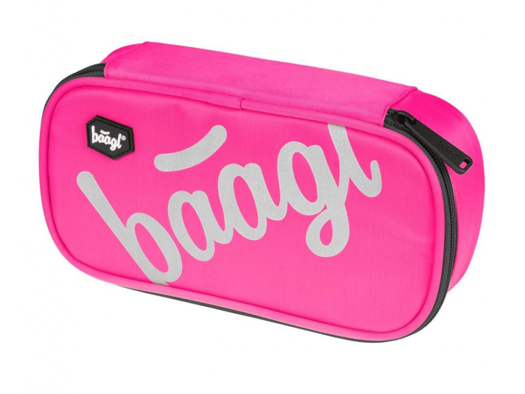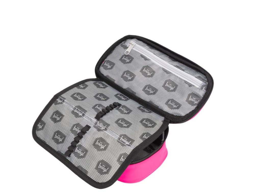 • Pevný penál na zip s dvojitou výklopnou chlopní v růžové barvě.