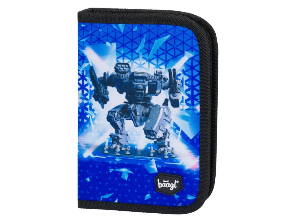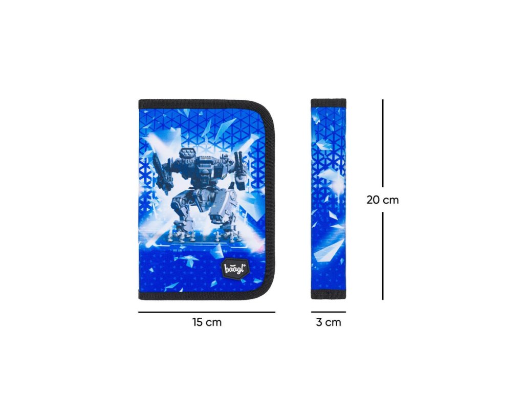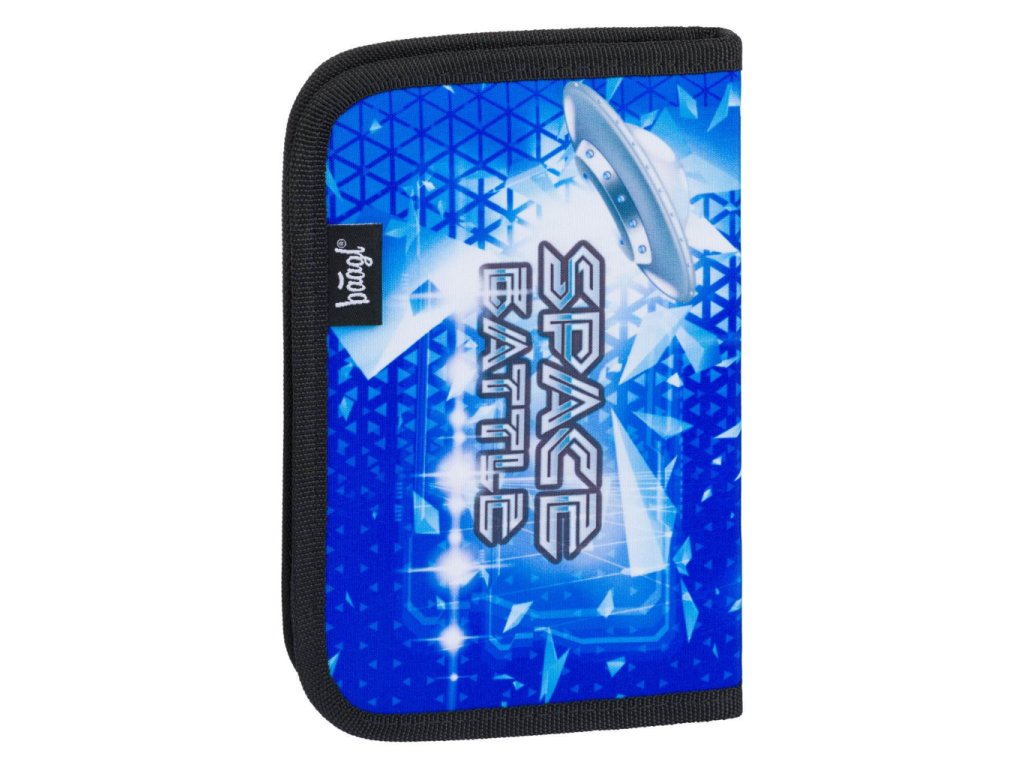 Školní penál klasik dvě chlopně Space Battle v modré barvě, vhodný od první třídy ZŠ.