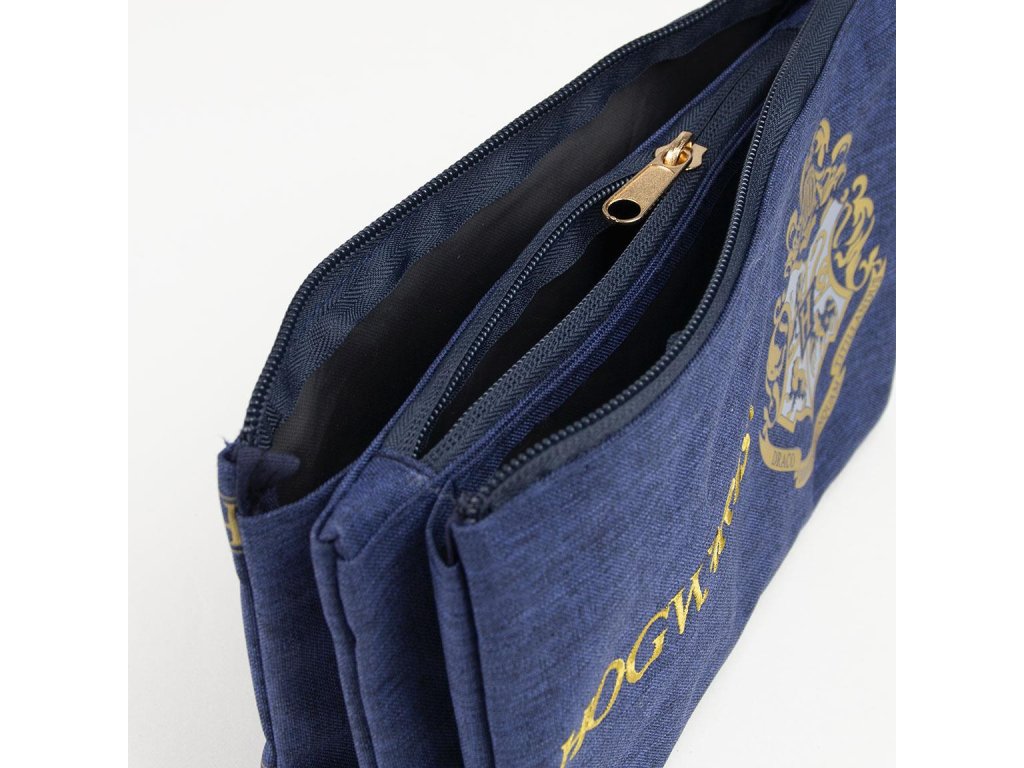 Atraktivní trojkomorový penál na psací potřeby s motivem Školy čar a kouzel v Bradavicích.