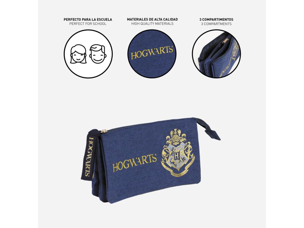 Atraktivní trojkomorový penál na psací potřeby s motivem Školy čar a kouzel v Bradavicích ze světa slavné knižní a filmové ságy HARRY POTTER.