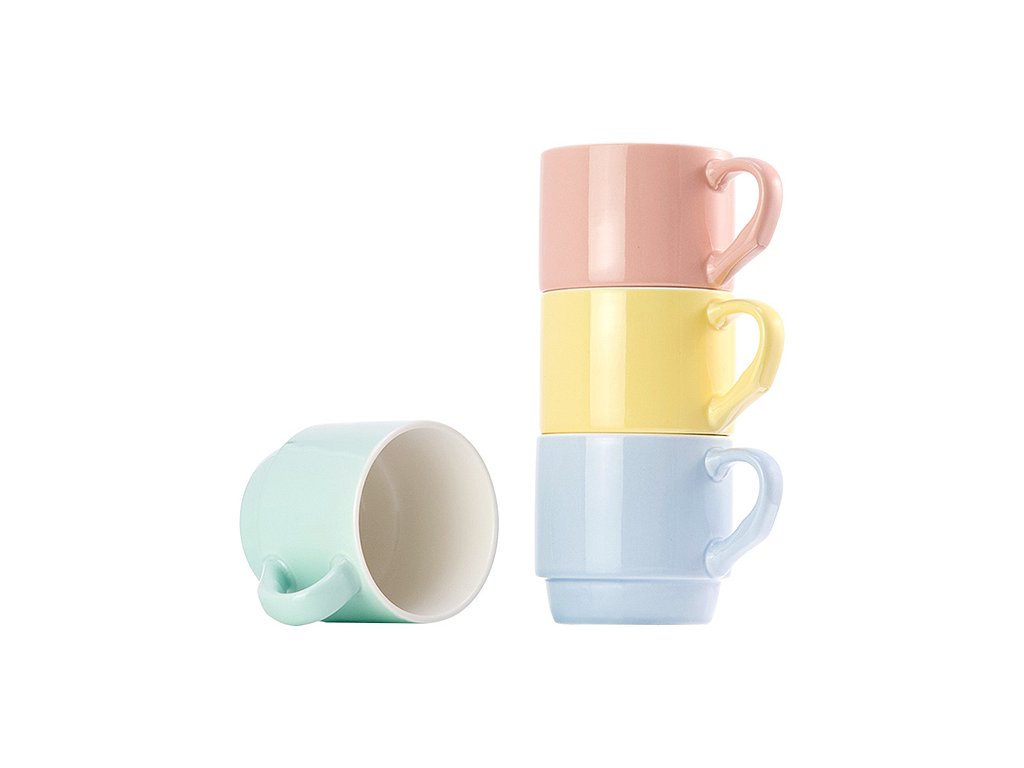 Hrnky mají speciálně navržené zúžené dno, které umožňuje jejich úhledné skládání. Stohovatelné provedení šetří místo a pomáhá udržovat skříň uklizenou a čistou.