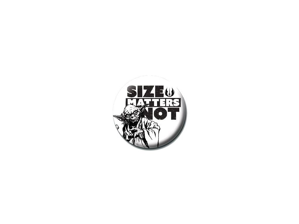 Placka / odznak s mistrem Yodou a heslem "Size Matters Not" (Na velikosti nezáleží) z filmové ságy Star Wars.