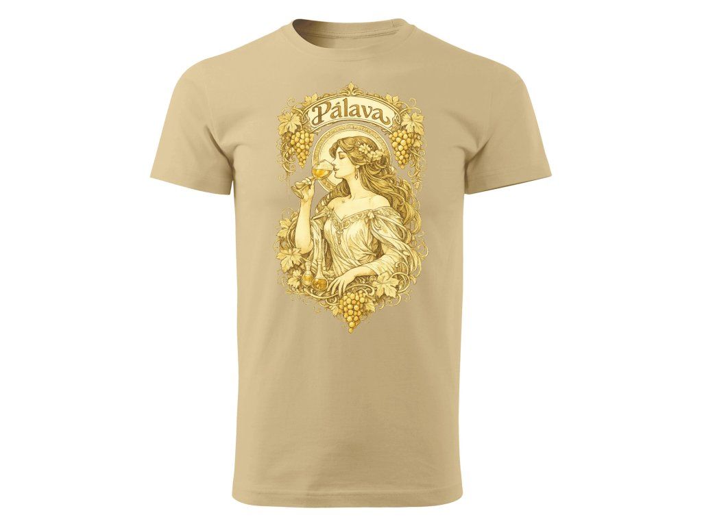 Stylové bavlněné tričko pro všechny obdivovatele slavného českého secesního malíře Alfonse muchy a milovníky vína.