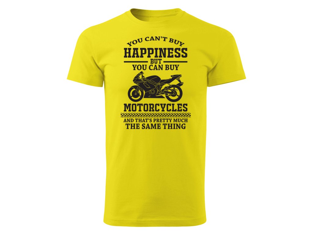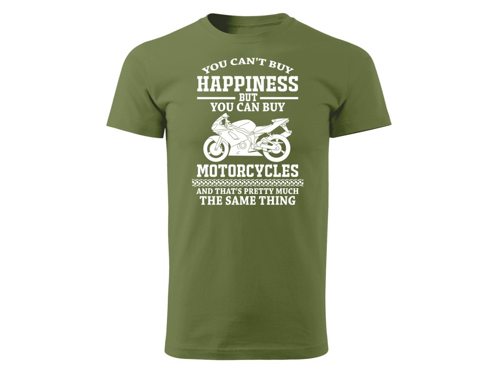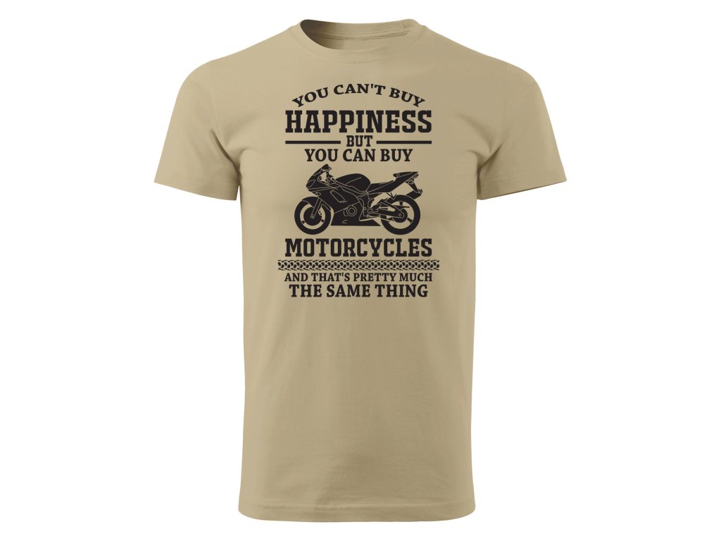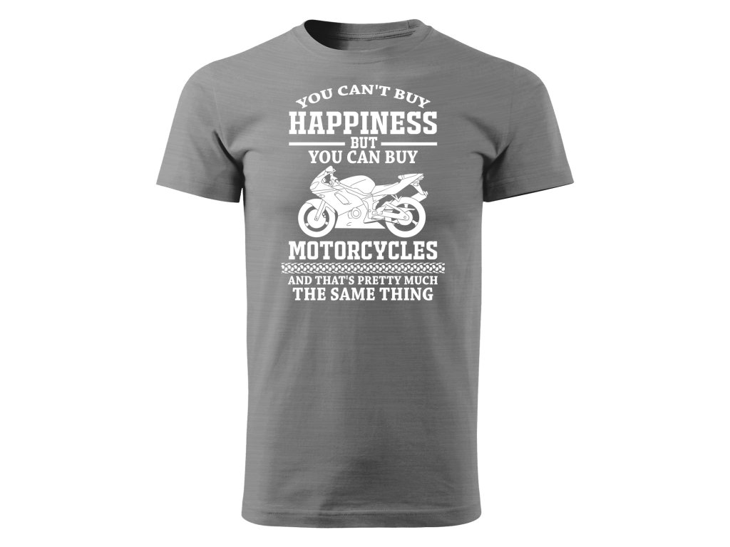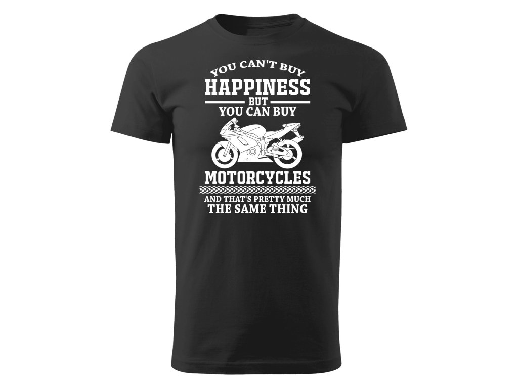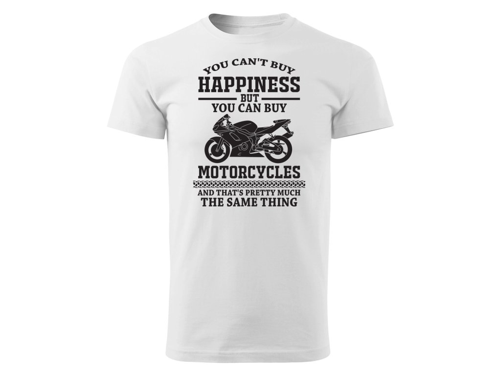 Vtipné bavlněné tričko určené pro každého motorkáře, který ví, že štěstí si sice koupit nelze - ale koupě motorky vám to zcela vynahradí.