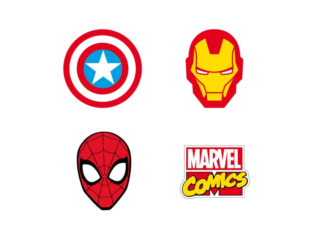 Sada 4 mazacích gum s motivem hrdinů a loga komiksového nakladatelství a studia MARVEL.