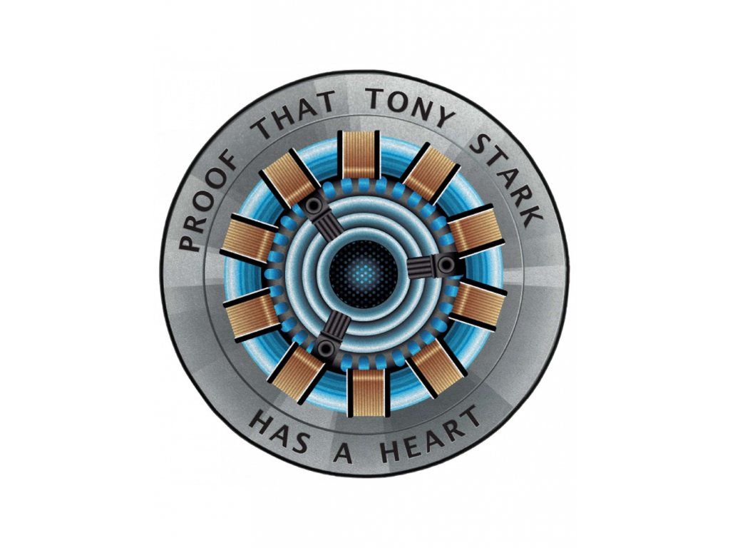 Kulatý koberec z mikrovlákna v podobě srdce Tonyho Starka a nápisem "Proof that Tony Stark has a Heart".