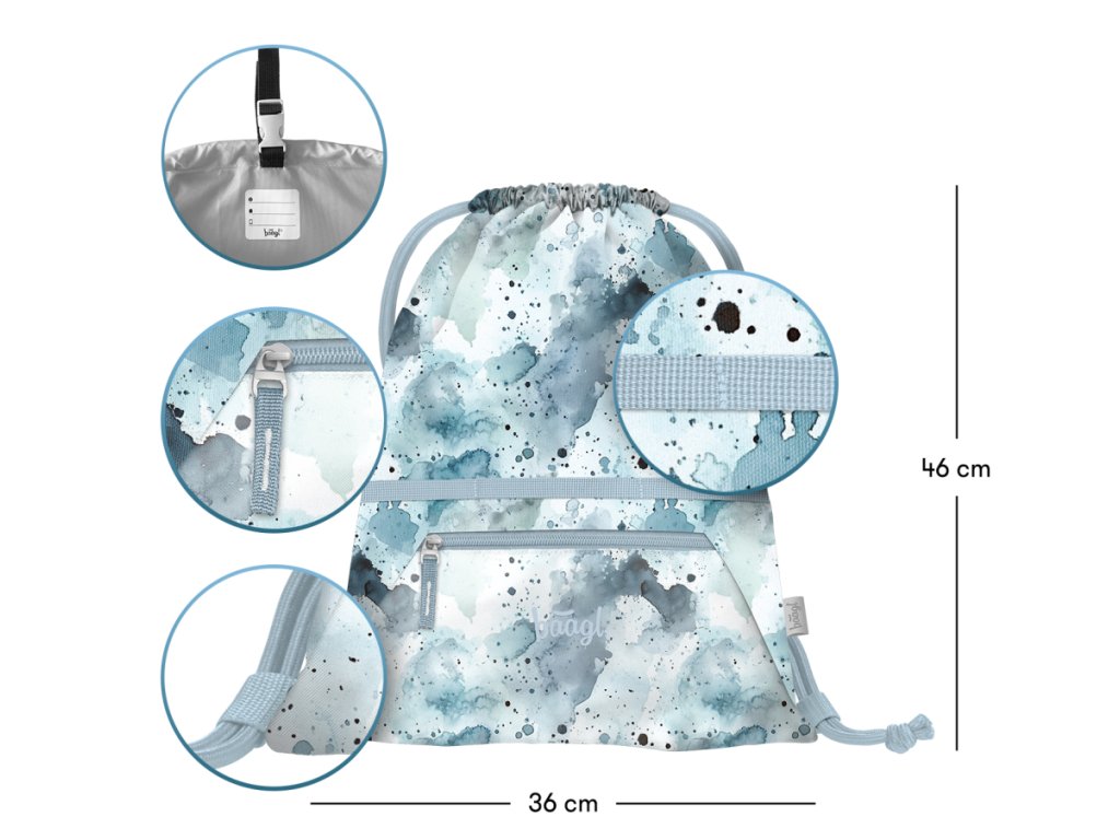 • Praktický sáček s kapsou na zip je vhodný nejen na přezůvky do školy, ale také na cesty, do města, na sportovní či jiné volnočasové aktivity.