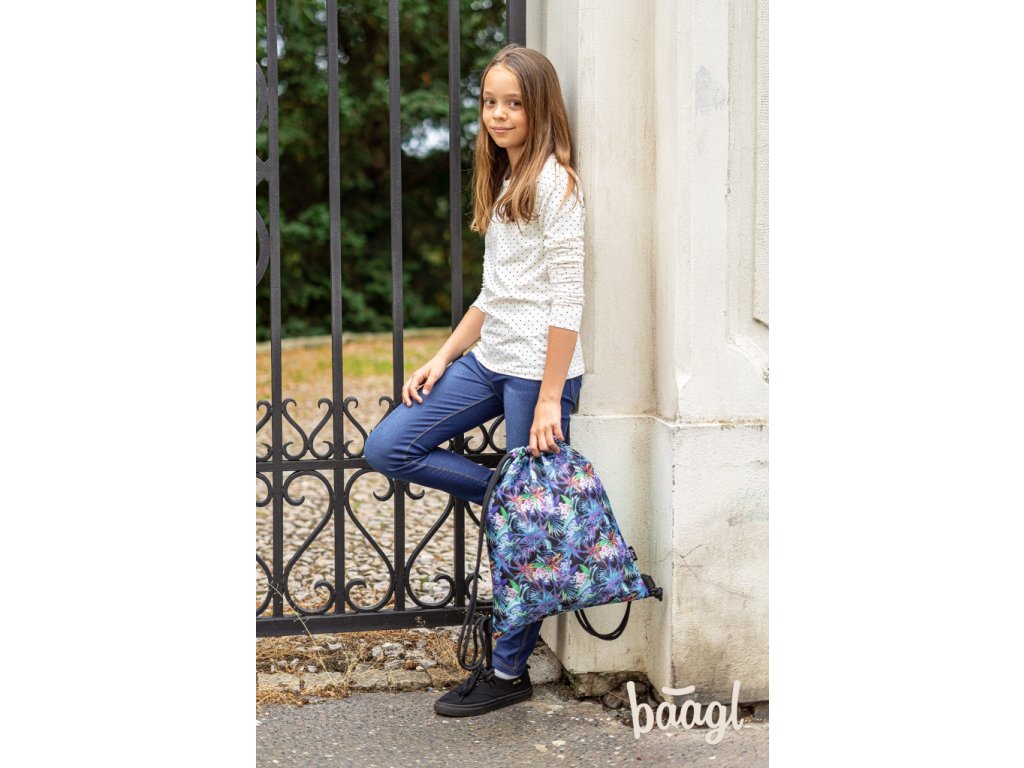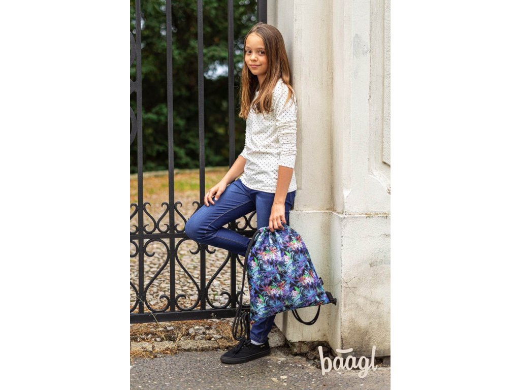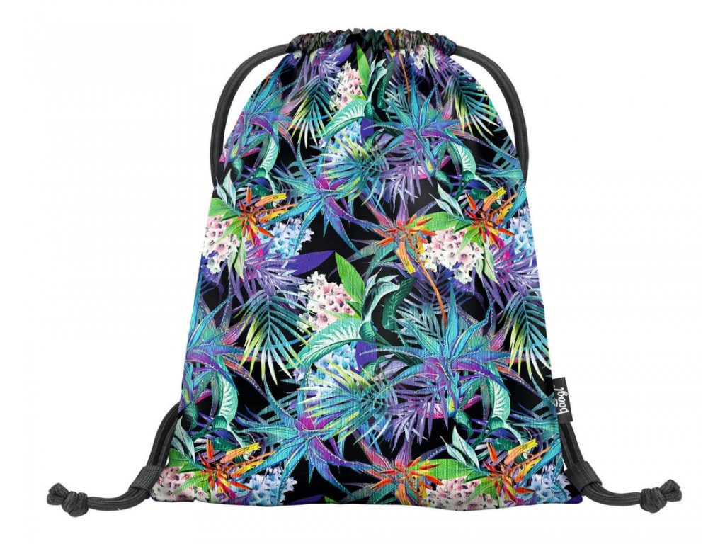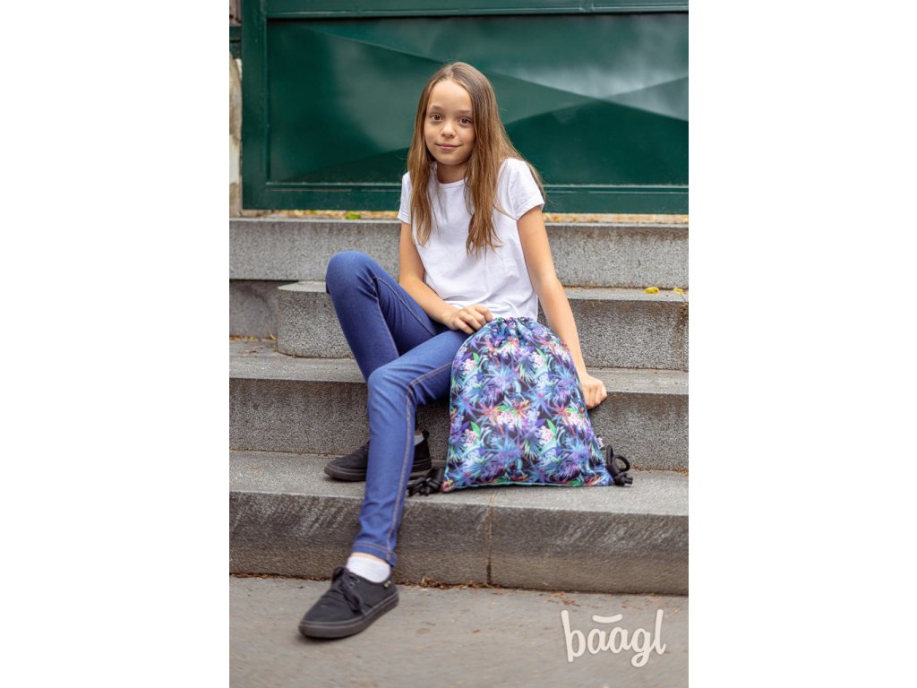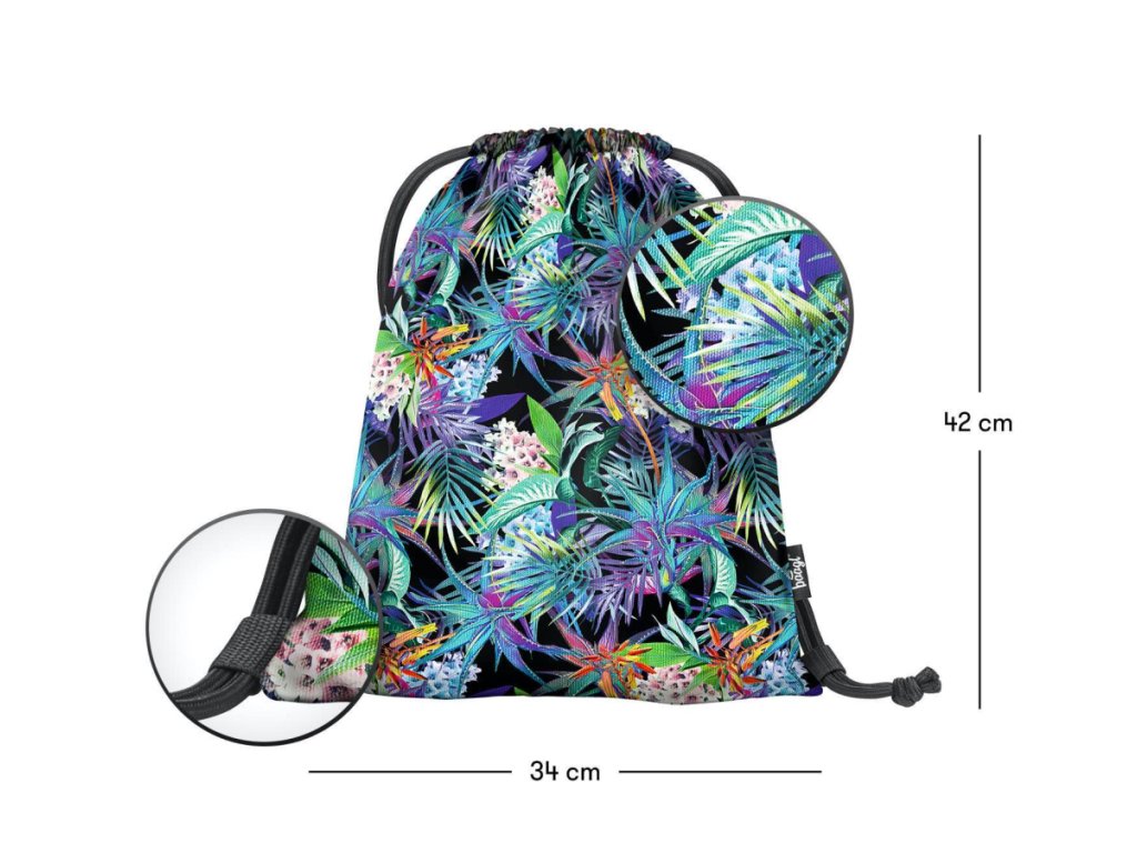 Dívčí sáček na cvičky nebo přezůvky s potiskem tropických květin.