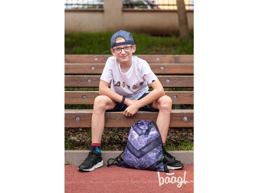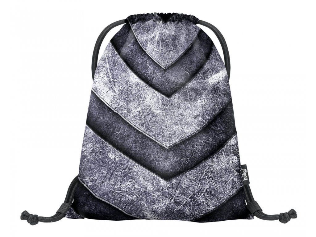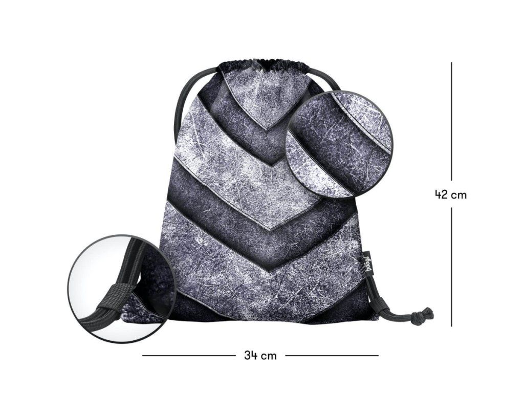 Šedivý chlapecký sáček na cvičky nebo přezůvky z pevného omyvatelného materiálu.