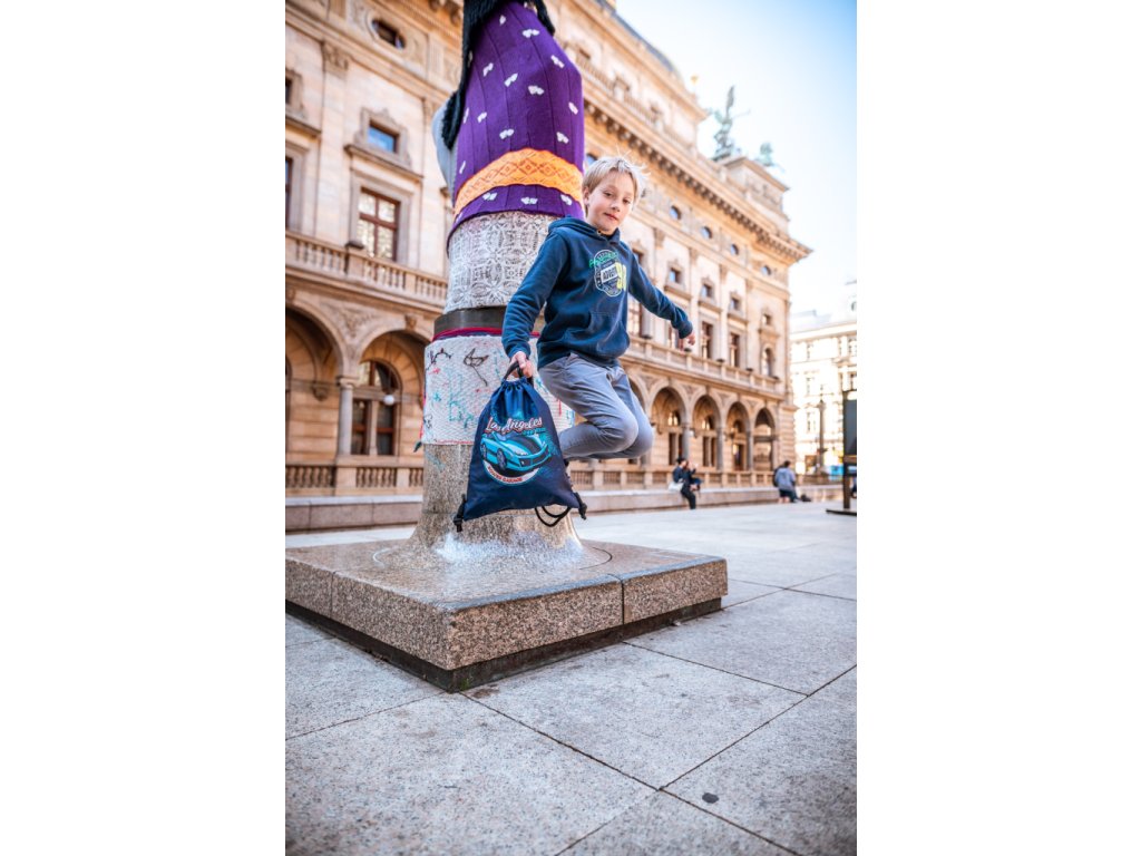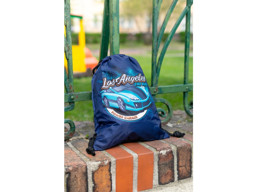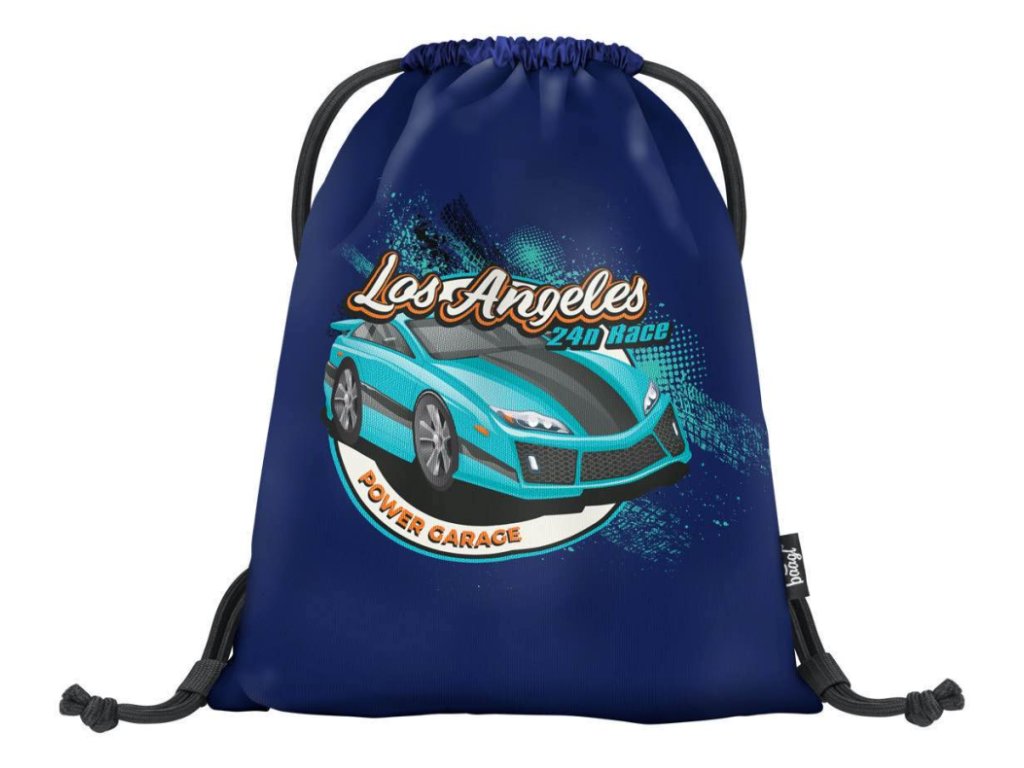• Sáček na cvičky nebo přezůvky s motivem závodního auta z pevného omyvatelného materiálu.