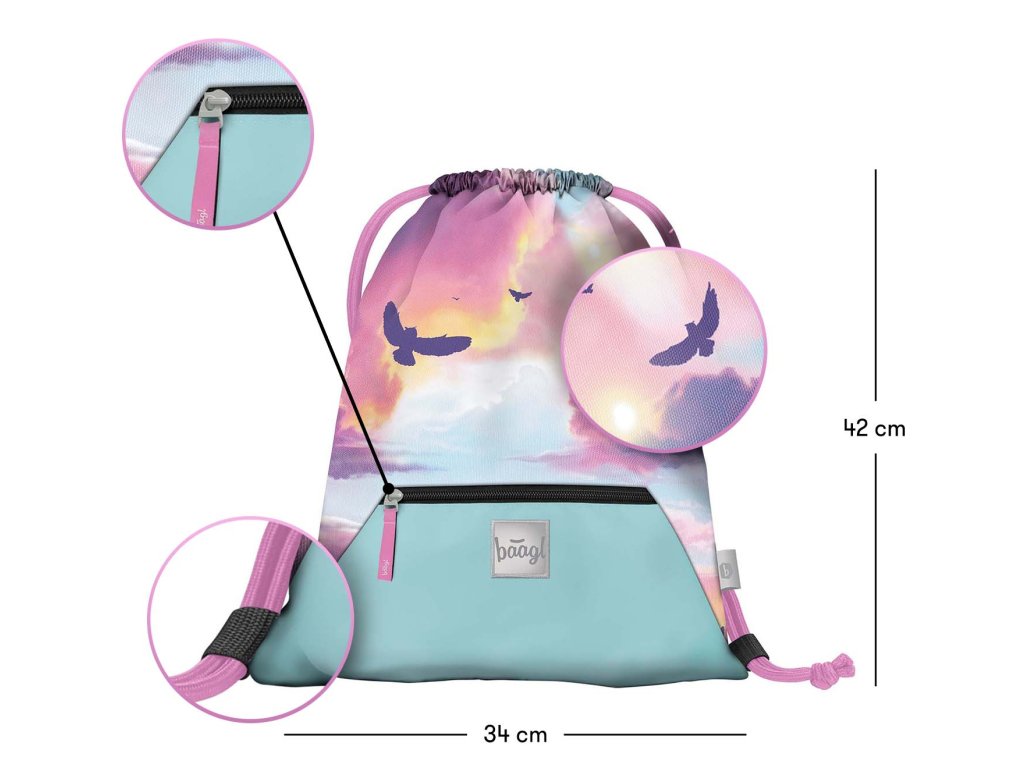 • Sáček je vyroben z pevného omyvatelného materiálu a v jeho dolní části je umístěna praktická kapsa na zip.